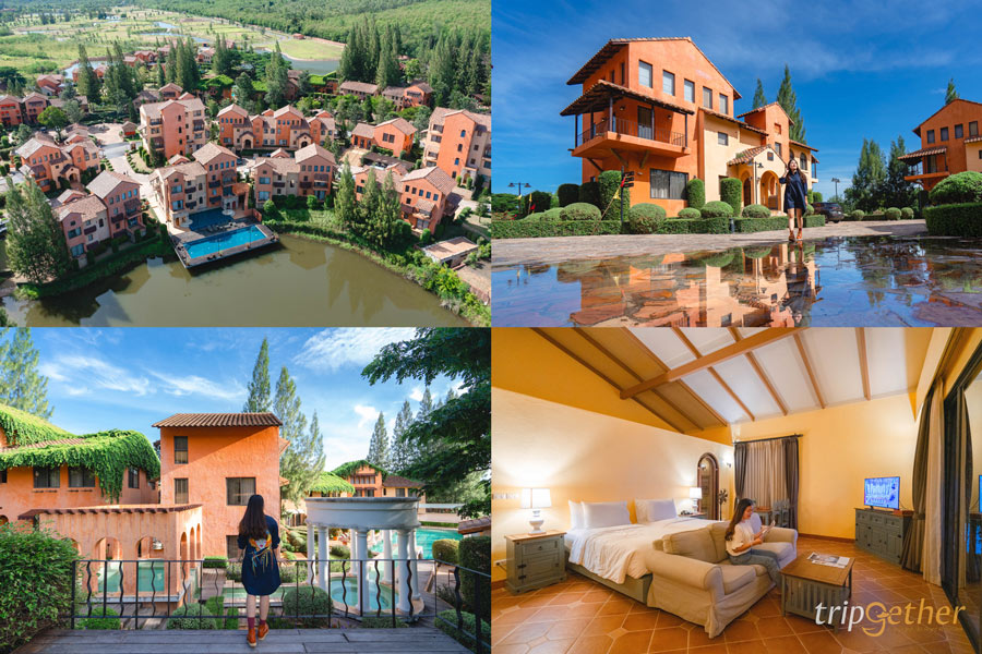 คืนนี้ เรามาเช็คอินเอนกายพักผ่อนกันที่ Toscana Valley ที่พักที่มีเอกลักษณ์และโดดเด่นที่สุดอีกแห่งหนึ่งของเขาใหญ่ ด้วยบรรยากาศที่จำลองความเป็นเมืองศิลปะอย่างอิตาลี ผ่านรูปแบบสถาปัตยกรรมและการตกแต่ง ตัวอาคารมากมายที่ใช้โทนสีส้มอิฐ เหล่าต้นสน รวมทั้งการตกแต่งต่างๆ ทำให้สามารถ่ายรูปสวยๆ ได้ทุกมุมกันเลยทีเดียว ภายในห้องพักก็เรียกได้ว่าหรูหราและสะดวกสบายด้วยเฟอร์นิเจอร์ต่างๆ นอกจากนี้ภายในพื้นที่ของ Toscana Valley ยังมีทั้งร้านอาหาร บาร์ และคาเฟ่ รวมทั้งมุมถ่ายรูปอื่นๆ อีกเพียบให้ได้ใช้เวลากันเพลินๆ