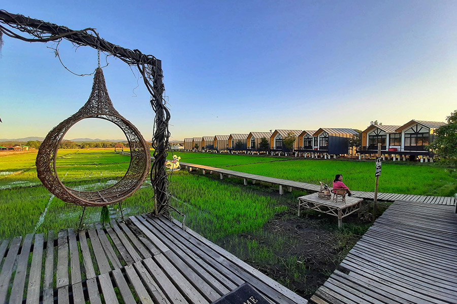 โรงแรม ฝาง โมเดิร์น ที่พักกลางทุ่งนาดีไซน์เก๋ แบ่งโซนออกเป็น โซนตึก, โซนบ้านเดี่ยวกลางทุ่ง, โซนแคมป์กระโจมติดแอร์ มาพร้อมอ่างจากุซซี่หน้าห้อง และบ้านกลางทุ่งแบบ 2 ห้องนอน แต่ละแบบน่ารักเก๋ไก๋ไม่แพ้กัน ที่สำคัญสามารถมองเห็นวิวเขียวๆ ของทุ่งนาได้ทุกห้อง ภายในที่พักสะดวกสบายด้วยร้านอาหารในตัว มีมุมให้นั่งพักผ่อนและถ่ายรูปเพียบ! ฟีลดีๆ แถมราคาดีแบบนี้ ต้องจัดแล้ว!