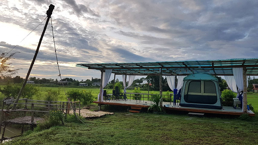 ภูผาม่าน โฮมสเตย์ ที่พักขอนแก่นกลางทุ่งนาสีเขียวซ่อนตัวอยู่ในอำเภอภูผาม่าน จังหวัดขอนแก่น ที่วิวของที่นี่สวยไม่แพ้ใคร เพราะที่พักโอบล้อมด้วยภูเขา บรรยากาศดีน่ามานอนชิลล์แบบสุดๆ ที่พักของภูผาม่าน โฮมสเตย์ มีให้เลือก 4 แบบ คือ แบบแรก Mountain view ที่เป็นบ้านกระจกสองชั้น แบบที่สอง The forest เป็นบ้านพักทรงเอเฟรม แบบที่สามห้องกระโจมวิว เป็นเต็นท์กระโจมติดแอร์ และแบบสุดท้ายคือกระท่อมริมทุ่ง ที่ไม่ว่าจะเลือกพักบ้านแบบไหนก็นอนชิลล์มองวิวภูผาม่านสวยๆ ได้ทั้งหมด ใครที่อยากมาเที่ยวแบบใกล้ชิดธรรมชาติ สัมผัสความพิเศษของภูผาม่าน ต้องมาที่ภูผาม่าน โฮมสเตย์กันเลย