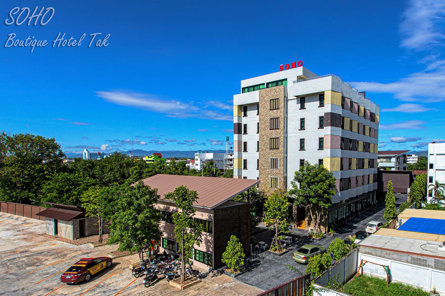 SOHO Boutique Hotel ที่พักจังหวัดตากตั้งอยู่ใจกลางเมือง ในทำเลที่เดินทางสะดวก และยังเหมาะกับผู้เดินทางมาพักผ่อนหรือทำธุระทั้งในระยะสั้นและระยะยาว ส่วนของห้องพักมีให้เลือกหลายแบบทั้ง Studio Double Bed, Studio Twin, Corner Double, Corner Double With Balcony และ Suite โรงแรมยังมาพร้อมสิ่งอำนวยความสะดวกต่างๆ มากมายไม่ว่าจะ High Speed Wi-Fi, Fitness and Gym ที่เปิดบริการ 24 ชั่วโมง มีลานจอดรถที่กว้างขวางและบริการจุดชาร์จรถไฟฟ้าด้วย ใครมีแพลนไปเที่ยวตากในทริปหน้าแวะไปเช็คอินที่ SOHO Boutique Hotel รับรองไม่ผิดหวังแน่นอน