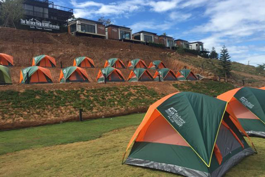 เดอะ เทอเรสวิว รีสอร์ท ที่พักสไตล์ลอฟท์เท่ๆ ที่มาพร้อมกับจุดกางเต้นท์วิวสวย ที่คุณจะได้ชมหมอกในยามเช้า จะสัมผัสอากาศเย็นได้แบบตลอดทั้งวัน สำหรับเต็นท์ของที่นี่จะตั้งเรียงอยู่บนเนินเขาแบบไล่ระดับ ให้คุณได้ชมวิวแบบส่วนตัวแบบไม่มีอะไรมาบดบัง นอกจากนี้ยังมากมายและครบครันด้วยสิ่งอำนวยความสะดวกที่จำเป็น เหมาะเป็นที่พักสำหรับวันหยุดสุดสัปดาห์ที่กำลังจะถึงเป็นที่สุด