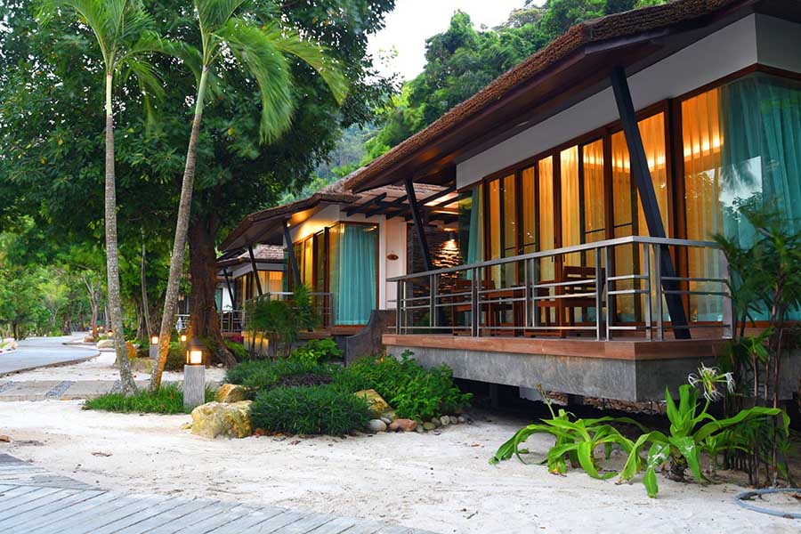 ขอเริ่มต้นกันที่ เกาะมันนอก ไพรเวท ไอส์แลนด์ หมู่เกาะเล็กๆ สุดไพรเวท ที่อยู่ไม่ไกลจากเกาะช้าง เรื่องหาดทรายและทะเลต้องยกให้เต็มสิบ ที่นี่ต้องเดินทางโดยเรือข้ามมา ใช้เวลาประมาณ 45 นาที บนเกาะมีธรรมชาติที่ค่อนข้างสมบูรณ์ มีป่าไม้ น้ำทะเล และหาดทรายสีขาวที่เราสามารถเดินชิลล์ได้รอบเกาะ ส่วนที่พักมาในรูปแบบบังกะโลทั้งหมด 22 หลัง มีให้เลือกทั้งวิวการ์เด้นและบีชฟร้อนเห็นวิวทะเลจากบนเตียง และถึงแม้จะอยู่บนเกาะก็ไม่กลัวว่าจะเหงา ที่นี่มีกิจกรรมอย่าง ดำน้ำ เดินป่า พายเรือยาคัคแบบชิคๆ หรือถ้าหากใครอยากชิลล์ก็มีสระว่ายน้ำเลียบชายหาด ที่ช่วงเย็นจะมีวิวพระอาทิตย์ลับขอบฟ้ามาร่ำลา ปิดท้ายวันได้อย่างประทับใจสุดๆ