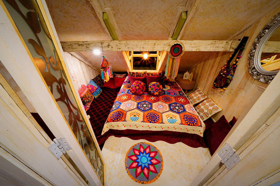 The Garret at Mae Kampong ที่พักตกแต่งสไตล์บูทีคผสมผสานความเป็นชนเผาชาวเขาและโบฮีเมียน ซึ่งตั้งอยู่ที่หมู่บ้านแม่กำปอง อ.แม่ออน จ.เชียงใหม่ สำหรับใครที่ชอบนอนในบรรยากาศห้องใต้หลังคาท่ามกลางธรรมชาติสุดเรียบง่ายอยากให้ลองมาสัมผัสกันได้ที่นี่เลย เพราะมีห้องพักรองรับถึง 17 ห้องกับเต็นท์กระโจมอีก 6 หลัง โดยภายในตกแต่งเรียบง่ายพร้อมเติมแต่งสีสันด้วยผ้าลายชนเผ่าต่างๆ ทั้งแบบโบฮีเมียนและโมร็อคโค อีกทั้งยังมีคาเฟ่น่ารักๆ อย่าง The Garret Coffee ที่จะมาเติมพลังให้วันใหม่ด้วยกาแฟออร์แกนิค และอาหารพื้นเมืองอย่าง น้ำพริกอ่อง น้ำพริกหนุ่ม ยอดฟักแม้วผัดกุ้ง และยังมีอาหารสไตล์ฟิวชั่นหลากหลายให้ลิ้มลองกันอีกด้วย