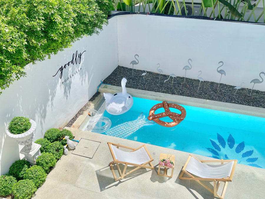 ที่พักพูลวิลล่าพัทยาสไตล์มินิมอล Goodly Poolvilla Pattaya บ้านสีขาวสุดคลีนที่ตกแต่งมาให้เหมือนคาเฟ่แห่งนี้ มาพร้อมมุมถ่ายรูปเพียบ บอกเลยว่าที่พักเอาใจสายคอนเทนต์แบบสุดๆ เพราะจัดมุมจัดพร็อพไว้ให้แบบจัดเต็มให้ผู้เข้าพักได้กดชัตเตอร์กันรัวๆ แนะนำเลยว่าใครมีเพื่อนเยอะต้องหลังนี้เท่านั้นเพราะที่นี่สามารถเข้าพักได้ 12 คน แต่สามารถรองรับเสริมเตียงได้สูงสุดถึง 20 คนกันเลย นอกจากเพลิดเพลินกับมุมถ่ายรูปแล้วอีกความพิเศษของที่พักคือ สระว่ายน้ำเป็นระบบเกลือ Jacuzzi ยาว 10 เมตร มาทั้งทีได้แช่น้ำและเล่นน้ำกันแบบฟินๆ แน่นอน ที่สำคัญบ้านหลังนี้เป็น pet-friendly ยินดีต้อนรับสัตว์เลี้ยงทั้งน้องหมาและน้องแมวด้วยนะ วันหยุดต่อไปใครหาที่พักพูลวิลล่าพัทยานัดเพื่อนๆ แล้วมาเช็คอินที่ Goodly Poolvilla Pattaya กันได้