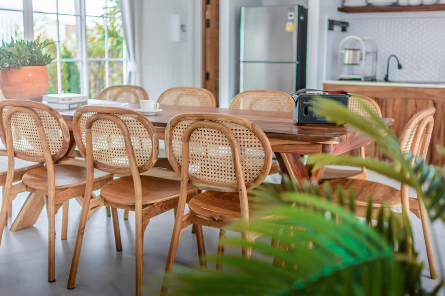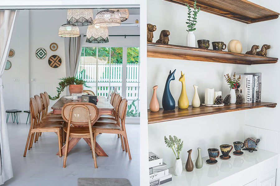 ที่พักพูลวิลล่าชะอำเปิดใหม่ Villa De Lareeya สุดมินิมอล มองแว็บแรกหลายคนอาจคิดว่าเป็นที่นี่เป็นคาเฟ่ชิคๆ เพราะการออกแบบและตกแต่งอย่างคุมโทน แถมมีมุมถ่ายรูปมากมายนั่นเอง ตัวบ้านสีขาวตัดกับประตู หน้าต่าง และเฟอร์นิเจอร์ ที่เป็นใช้วัสดุไม้และหวาย แถมมุมต่างๆ ยังมีสีเขียวจากต้นไม้ บอกเลยว่าลงตัวเหมือนหลุดออกมาจาก Pinterest มากๆ บอกเลยว่าที่นี่เหมาะกับการมาพักผ่อนกับกลุ่มเพื่อน ครอบครัว หรือจะมา Outing ของบริษัท ก็สามารถมาได้เพราะนอกจากพื้นที่บ้านกว้างขวางแล้วที่นี่ยังมีสนามหญ้าให้จัดปาร์ตี้ ไม่เท่านั้นยังมีลานนั่งชิลล์ที่ดาดฟ้าของบ้านอีกด้วย ที่สำคัญมาชะอำทั้งทีใครอยากรับลมทะเลจาก Villa De Lareeya สามารถปั่นจักรยานไปเดินเล่นชายหาดได้ไม่ไกลด้วยนะ