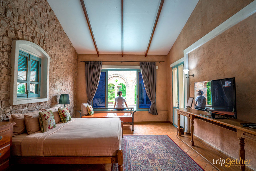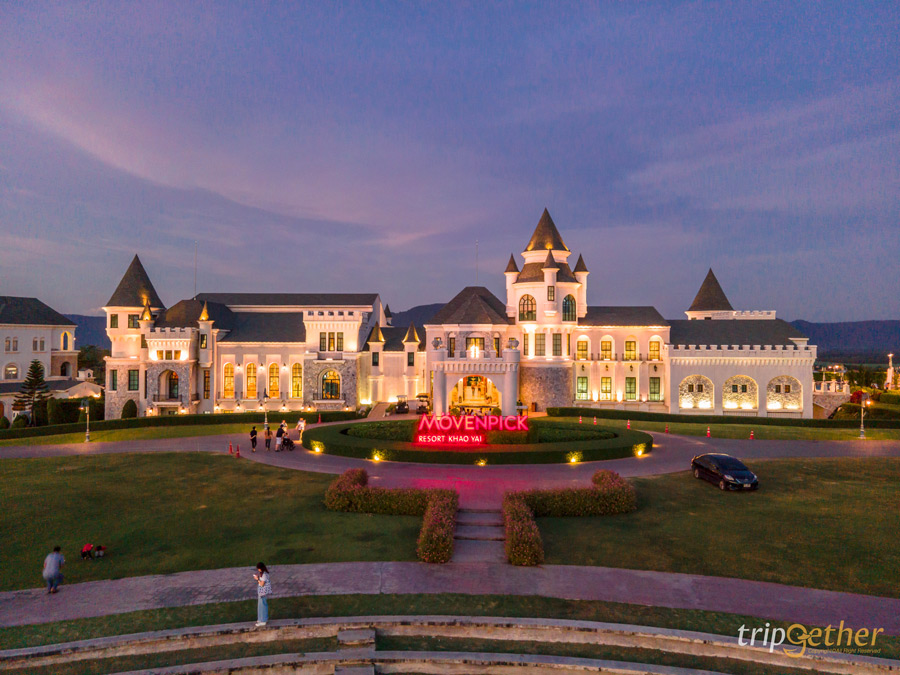 Movenpick Resort Khao Yai รีสอร์ท 5 ดาวที่เขาใหญ่ ตั้งอยู่บนพื้นที่กว่า 1,300 ไร่ มีพื้นที่กว้างขวางเหมือนอยู่ในเทพนิยาย ออกแบบและตกแต่งด้วยสถาปัตยกรรมสไตล์ยุโรป โดดเด่นด้วยปราสาทแบบทัสคานี พื้นที่โดยรอบมีสวนดอกไม้และต้นไม้ต่างๆ ที่สำคัญคือมี Facility ครบครัน แบบชนิดที่ว่าเข้ามาพักที่นี่แล้ว ไม่ต้องออกไปไหนอีกเลย ที่นี่มีห้องพักให้เลือกถึง 112 ห้อง และมีทั้งหมด 7 ไทป์ด้วยกัน ได้แก่ Deluxe, Executive Deluxe, Ozone Suite 2 Bedroom, Penthouse, Villa 2 ห้องนอน, Villa 3 ห้องนอน และ Pool Villa 5 ห้องนอน ทางรีสอร์ทมีสระว่ายน้ำส่วนกลางขนาดใหญ่ มีทั้งสระในร่มและกลางแจ้ง นอกจากนี้บริเวณรีสอร์ทยังมีสวนสัตว์ My Ozone Animal Club สามารถเดินเล่นและให้อาหารสัตว์ต่างๆ ได้ อาทิ แพะ กวาง ควาย ม้า และกระต่าย หรือใครเป็นสายแอดเวนเจอร์อยากถ่ายรูปตอนขี่ม้าคูลๆ ที่นี่ก็มีบริการขี่ม้าเป็นรอบๆ อีกด้วยนะ และมีห้องอาหารแบบ All day Dining ชื่อว่า Flavours of Khao Yai ที่มีเสิร์ฟทั้งอาหารไทยและอาหารนานาชาติในมื้อเที่ยง – ค่ำ ส่วนเรื่องมุมถ่ายรูปก็ไม่ต้องเป็นห่วง เพราะที่นี่สามารถถ่ายรูปได้ทุกมุม ทั้งมุมสวนดอกไม้ สนามหญ้า แถมมีมุมชิงช้าที่มีฉากหลังเป็นปราสาทสุดหรูอีกด้วย มาเขาใหญ่ต้องห้ามพลาดเลย