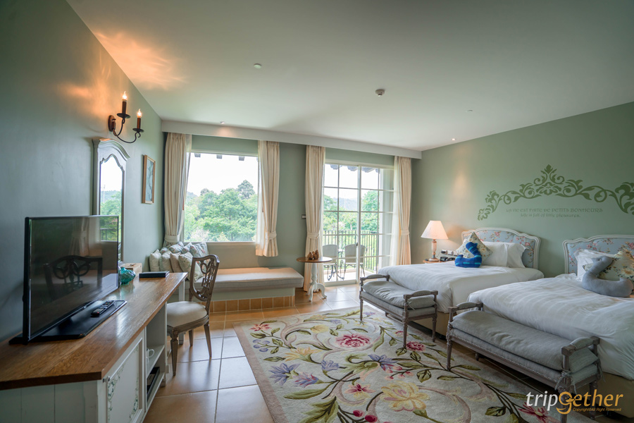 U Khaoyai ที่พักเขาใหญ่สุดหรู ตกแต่งเป็นปราสาทในหมู่บ้านชนบทแถบยุโรป ล้อมรอบไปด้วยต้นไม้ร่มรื่น ด้านหลังโรงแรมมีลำธารไหลผ่าน ห้องพักมีให้เลือกหลายไทป์ ทั้ง Superior Room, Deluxe Room และ Suite Room ตัวห้องกว้างขวาง ตกแต่งด้วยสีขาวและสีครีม ผสมผสานกับสีน้ำตาลอ่อน เฟอร์นิเจอร์และของตกแต่งเป็นแนววินเทจสุดหรู ให้ความรู้สึกเหมือนพักผ่อนในวัง สามารถถ่ายรูปได้ทุกจุดของที่พัก ใครสายกิจกรรม ทางที่พักก็มีทั้งสระว่ายน้ำกลางแจ้งและห้องฟิตเนสไว้ให้บริการ ส่วนถ้าใครอยากออกกำลังกายโดยการปั่นจักรยาน ก็มีจักรยานให้ยืมปั่น แถมยังมีเรือคายัคไว้ให้พายเล่นอีกด้วย ส่วนใครสายกินก็ไม่ต้องห่วง ในบริเวณที่พักมีห้องอาหาร Papillon ห้องอาหารบรรยากาศแบบฝรั่งเศส เสิร์ฟอาหารฟิวชั่นแนวโฮมเมด มีทั้งอาหารฝรั่งเศสบิสโทรและอาหารไทย มีเครื่องดื่มต่างๆ และแอลกอฮอล์ด้วย บอกเลยว่าเข้ามาแล้ว จะไม่อยากออกไปไหนอีกเลย