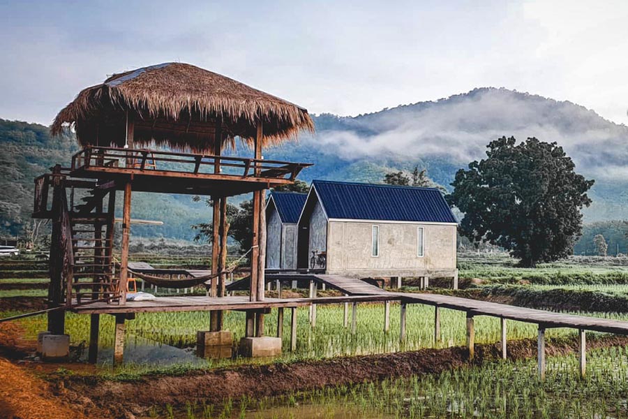 Price: -ราคาบ้านพักกลางนา 1,250 บาท/หลัง (ราคารวมอาหารเช้า)