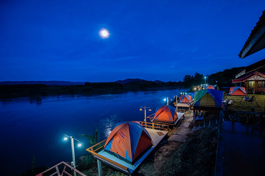 จันทร์ผา โฮมสเตย์ ที่พักและจุดกางเต็นท์ริมน้ำโขง ที่จะพาไปสัมผัสบรรยากาศสุดว้าว มีให้เลือกทั้งแบบบ้านพักและแบบเต็นท์สำหรับใครที่อยากได้บรรยากาศชิลล์ๆ สามารถชมหมอกในยามเช้าที่ลอยคลุ้งท่ามกลางวิวเขา และพระอาทิตย์ตกที่สุดแสนโรแมนติก ใกล้ชิดติดริมน้ำสุดๆ หรือใครอยากชมทะเลหมอกสวยๆ ยามเช้าตรู่ ก็สามารถขึ้นไปที่ภูห้วยอีสันจุดชมวิวทะเลหมอกที่มองเห็นไกลถึงประเทศลาวได้เลย