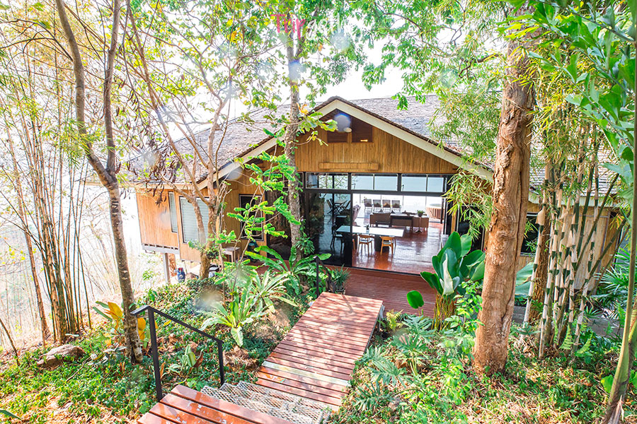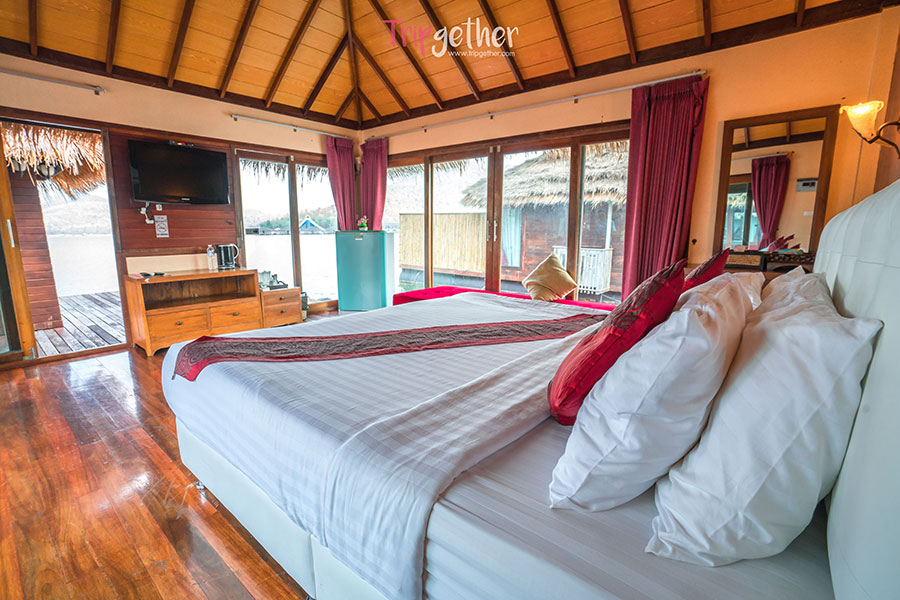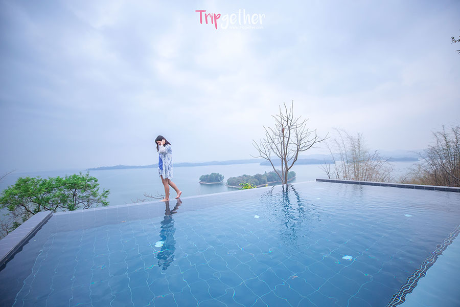 รีสอร์สสไตล์มัลดีฟล้อมรอบด้วยทิวทัศน์ภูเขาและสายน้ำ มีบ้านพัก 36 หลัง ให้เลือก 4 แบบด้วยกัน บ้านพักลอยน้ำ, บ้านพักเนินเขา, บ้านโมเดิร์น และบ้านแฟมิลี่ พักที่นี่มากันครอบครัว 2 ครอบครัวใหญ่ ก็มีห้องแบ่งสองห้องให้ใน 1 แพ มีความเป็นส่วนตัวสุดๆ มีกิจกรรมให้เล่นมากมายทั้ง สวนน้ำ, เครื่องเล่นกีฬาทางน้ำ, สไลเดอร์, พายเรือคายัค และเจ็ตสกี สำหรับเจ็ตสกีผู้เข้าพักต้องนำมาเอง พร้อมมุมสวนพักผ่อน สะพานทอดยาวให้ถ่ายรูปและผ่อนคลายไปกับการให้อาหารปลาคราฟสีทอง เรียกได้ว่ามีครบจบในที่เดียวจริงๆ