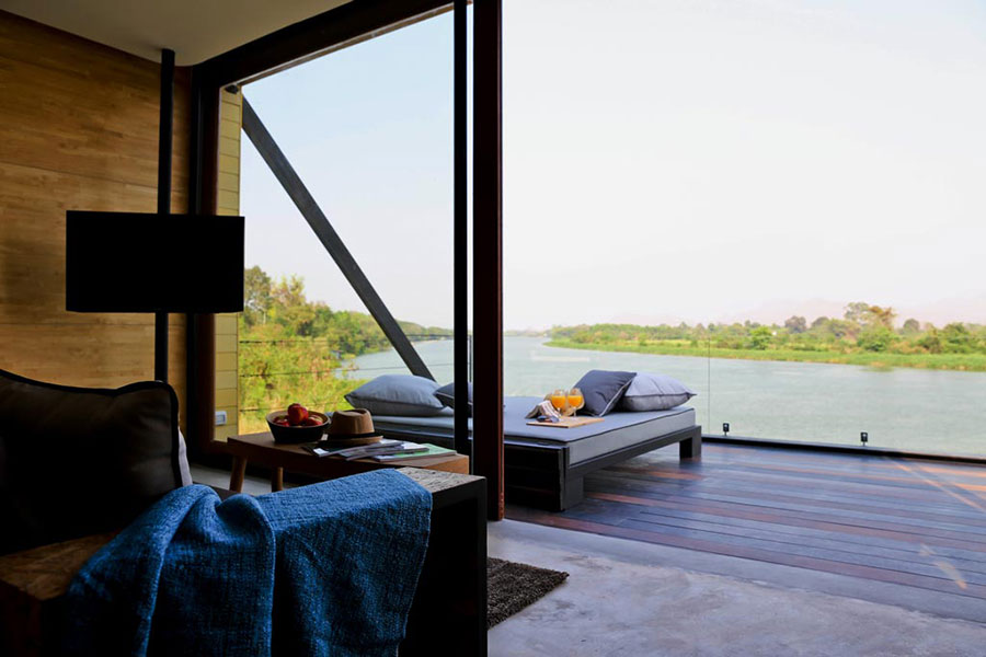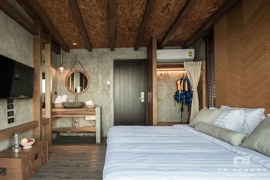 ปิดท้ายด้วยรีสอร์ทสไตล์บูติก เป็นที่พักภายใต้แบรนด์เดียวกันกับไทรโยค วิว รีสอร์ท ซึ่งที่นี่มีห้องพักทั้งหมด 13 ห้องรอบล้อมไปด้วยธรรรมชาติสวยงามและพักผ่อนได้แบบเป็นส่วนตัวสุดๆ ภายในห้องพักสร้างด้วยไม้จัดวางองค์ประกอบได้เป็นอย่างดีให้ความรู้สึกอิงแอบใกล้ชิดธรรมชาติ ถ้าใครสนใจอยากนั่งเรือชมวิวสถานที่ต่างๆ ก็สามารถสอบถามที่พักได้ อีกทั้งภายในรีสอร์ทยังมีสระว่ายน้ำแบบลอยน้ำให้คุณได้ทำกิจกรรมกลางแจ้ง พร้อมพักผ่อนหย่อนใจเหมือนได้ชาร์ตแบตไปกับบรรยากาศสุดสดชื่นท่ามกลางสายน้ำและธรรมชาติอันสวยสดงดงาม
