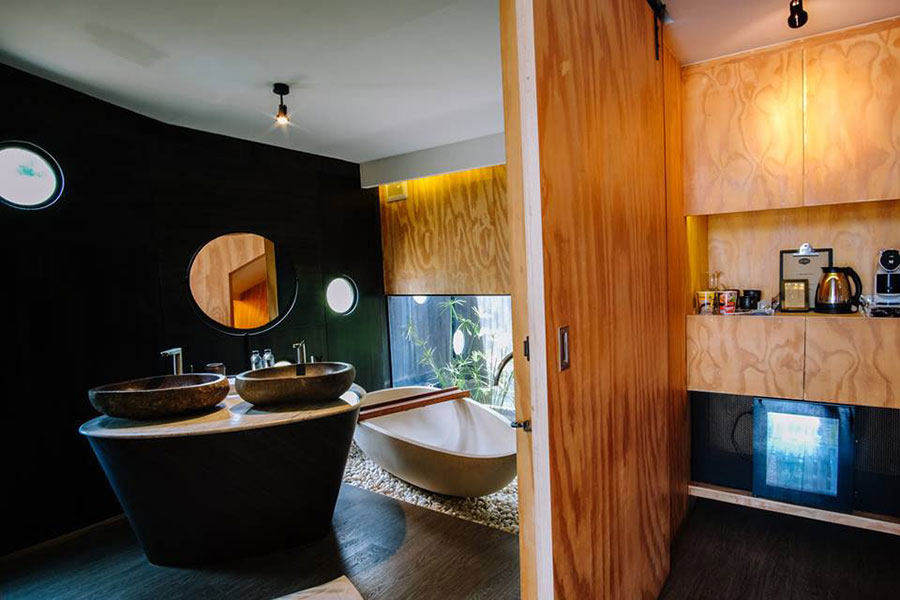รีสอร์ทสไตล์โมเดิร์นโทนสีดำใช้ไม้และโครงเหล็กให้ความรู้สึกแข็งแรงบนแม่น้ำแควน้อย มีห้องพักทั้งหมด 22 ห้อง 6 ไทป์ด้วยกัน LuXe Cabin, XFloat Cabin, XFloat Cabin Suite, LuXe Cabin Suite, PoolXide Cabin, PoolXide Cabin Suite, และ XFloat Luxe Cabin แบ่งห้องพักเป็น 2 ฝั่ง ทั้งแบบมองเห็นวิวผืนน้ำกว้างใหญ่และห้องพักติดสระว่ายน้ำรายล้อมด้วยภูเขาสีเขียวชอุ่ม ที่พักมีห้องกว้างขวางเข้าพักได้ทั้งครอบครัว หรือมากับแฟนสองคนก็โรแมนติกได้บรรยากาศดี