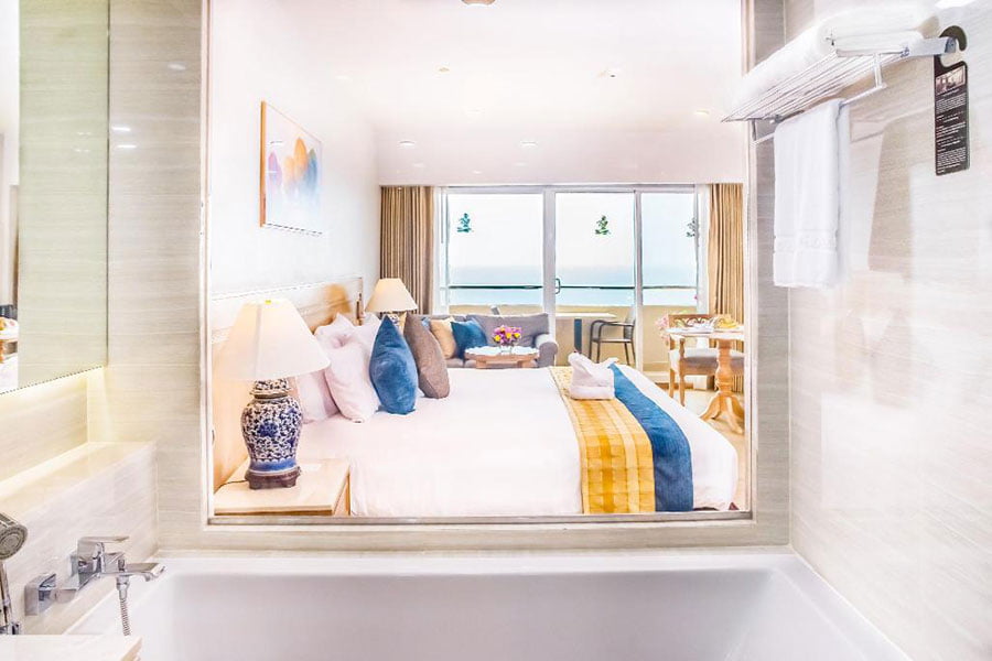 Royal Cliff Beach Hotel ที่พักสุดเรียบหรูมีระดับตั้งอยู่เลียบริมทะเลมาพร้อมการตกแต่งสไตล์โมเดิร์นสุดทันสมัยพร้อมวิวปังทุกห้อง มีห้องพักให้เลือกถึง 16 ไทป์คือ Mini Suite Plus (Sunrise View/Sea View), Grand Sea View, Grand Sea View Plus, Honeymoon Deluxe, Ocean Deluxe, Family Suite (2 bedrooms), Theme Suite (1 bedroom), Theme Suite (2 bedrooms), Junior Suite (1 bedroom), Regency Suite (1 bedroom), Regency Suite (2 bedrooms), Royal Suite (2 bedrooms), Royal Wing Suite, Presidential Heritage Suite, Presidential Platinum Suite และ Diamond Suite ไม่ว่าจะมาพักแบบสวีทกับแฟนหรือพาครอบครัวมาพักผ่อนก็ตอบโจทย์ได้ครบทุกความต้องการอย่างแน่นอน และมุมที่พลาดไม่ได้ก็คือ มุมนั่งชิลล์ชมวิวทะเลกับมุมโต๊ะกลางสระน้ำที่บอกเลยว่าฟินจนต้องกลับมาซ้ำอย่างแน่นอน