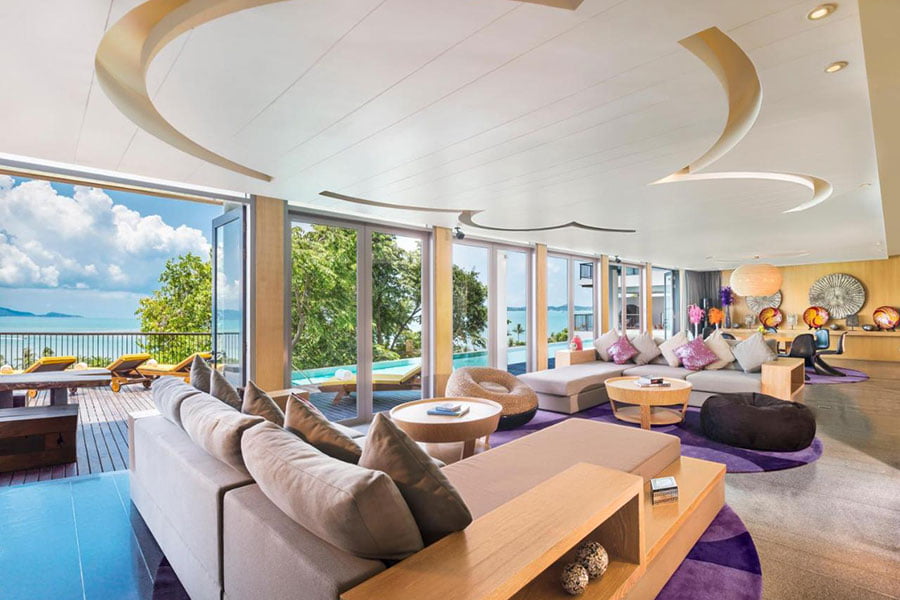 W Koh Samui ที่พักสวยระดับ 5 ดาวบนเกาะสมุยด้วยบรรยากาศสุดผ่อนคลายมาพร้อมห้องพักทั้งหมด 8 ไทป์ คือ Jungle Oasis, Tropical Oasis, Ocean View Escape, Ocean Front Haven, WOW Jungle Oasis, WOW Ocean Haven, Extreme WOW Ocean Haven และ Seascape Escape ภายในห้องพักทุกห้องกว้างขวางจัดสรรพื้นที่ภายในเอาไว้อย่างครบครันสามารถใช้งานได้ครบทุกฟังก์ชั่น เข้าพักที่นี่จะพลาดไฮไลท์เด็ดไม่ได้คือ มุมนั่งชิลล์กลางสระน้ำที่จัดสรรความหรูหราพร้อมด้วยวิวสุดอลังการบนสระว่ายน้ำอิฟินิตี้พูล ใครได้มาชิลล์มุมนี้ได้รูปปังแน่นอน