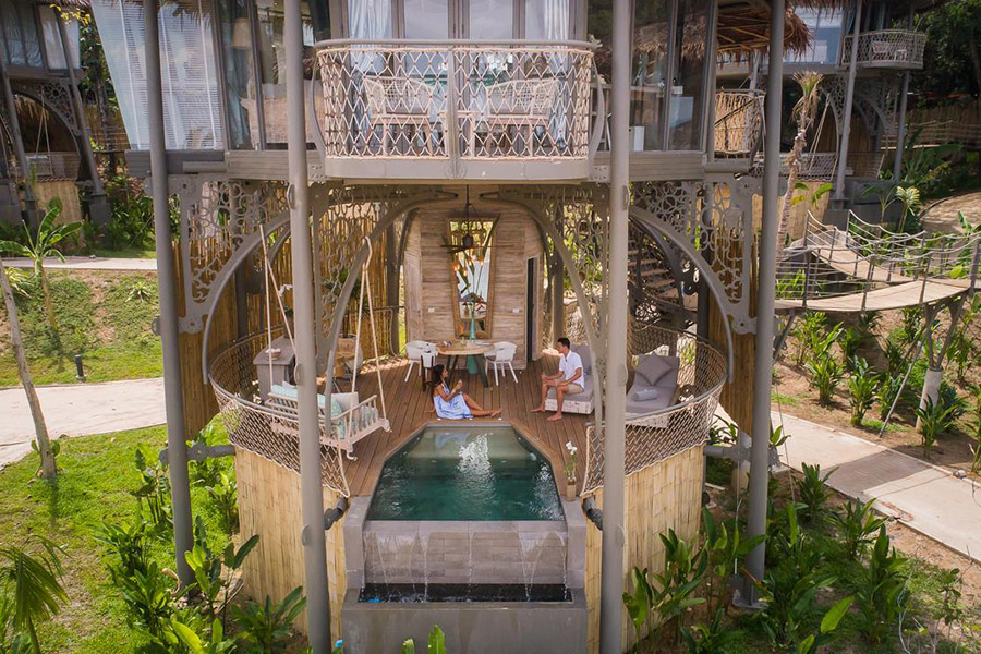 ทรีเฮ้าส์ วิลล่าส์ ที่พักสุดหรูให้ความรู้สึกแบบบาหลี โดดเด่นด้วยการตกแต่งที่เน้นใช้วัสดุจากธรรมชาติ ใส่ใจสิ่งแวดล้อม โดยเฉพาะห้องพักแบบ Treehouse Villa ตกแต่งลักษณะคล้ายรังนกที่หรูหรา ขนาด 2 ชั้น โดยชั้นล่างเปิดโล่ง มีสระว่ายน้ำที่ยื่นออกไปกลางธรรมชาติ เป็นเสมือนห้องโถงสำหรับนั่งเล่นพักผ่อน ส่วนชั้นบนเป็นห้องกระจกสามารถมองเห็นวิวทะเลได้จากบนเตียง นอกจาก Treehouse Villa ห้องพักแบบอื่นๆ ก็เก๋ไก๋ไม่แพ้กัน อย่างห้อง Beachfront Pool Villa ห้องพักริมชายหาดที่มีสระว่ายน้ำสุดส่วนตัว และแบบ Hilltop Pool Villa Koh Yao บ้านพักสไตล์ยุโรปสำหรับ 4 ท่าน ที่มีครบทุกความสะดวกสบาย ทรีเฮ้าส์ วิลล่าส์ เป็นอีกหนึ่งที่พักริมทะเลสุดหรูที่มีบรรยากาศเป็นส่วนตัวและเหมาะกับการพาคู่รักมาสวีทเป็นที่สุด