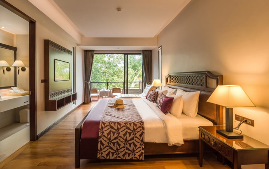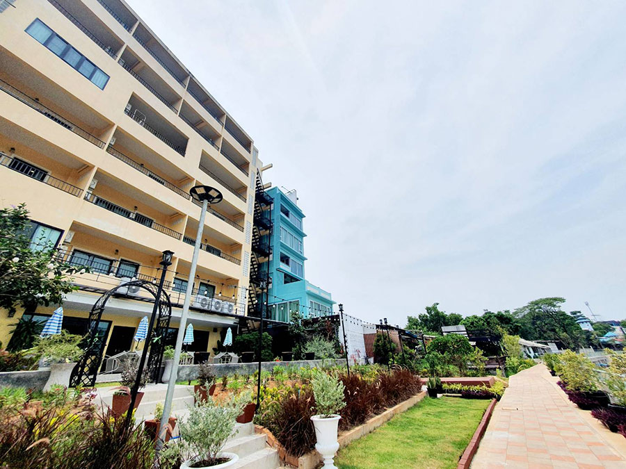 โรงแรมริมน้ำกลางจันท์ ที่พักริมน้ำจันทบุรีที่มาพร้อมกับธรรมชาติโอบล้อมและความเงียบสงบ การออกแบบที่พักเป็นแบบร่วมสมัย สะท้อนแนวคิดอันทันสมัยที่ผสมผสานกันอย่างลงตัวกับเสน่ห์ของเมืองจันท์ โรงแรมมีห้องพักมากถึง 40 ห้อง ทุกห้องมีระเบียงกว้างมองเห็นวิวแม่น้ำจันบุรี มีห้องให้เลือกทั้งแบบ Deluxe Room, Premiere Room และ Jacuzzzi Suite Room ซึ่งเป็นห้องที่มาพร้อมกับอ่างจากุชชี่ริมระเบียง ได้นอนแช่น้ำสบายๆ มองวิวเพลินๆ ฟีลดีมาก อีกทั้งการตกแต่งในห้องที่เน้นโทนสีขาวและเฟอร์นิเจอร์จากไม้ ช่วยเสริมบรรยากาศให้ดูผ่อนคลายและอบอุ่นยิ่งขึ้น นอกจากนี้ยังมีสิ่งอำนวยความสะดวกครบครัน ไม่ว่าจะเป็นสระว่ายน้ำที่ตั้งอยู่ริมน้ำ ฟิตเนส ห้องอาหาร ที่ล้วนแต่มอบประสบการณ์การพักผ่อนที่คุ้มค่าแก่การมาพัก