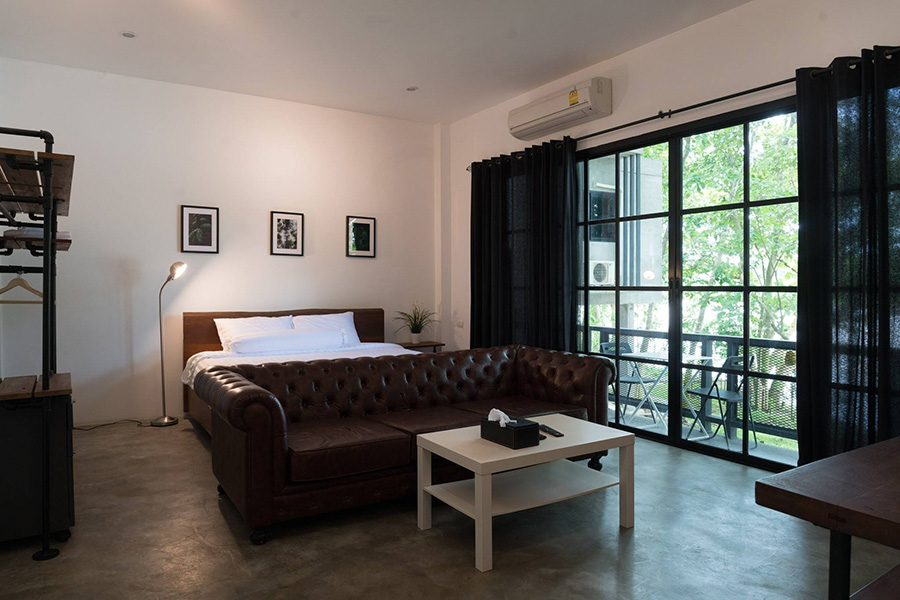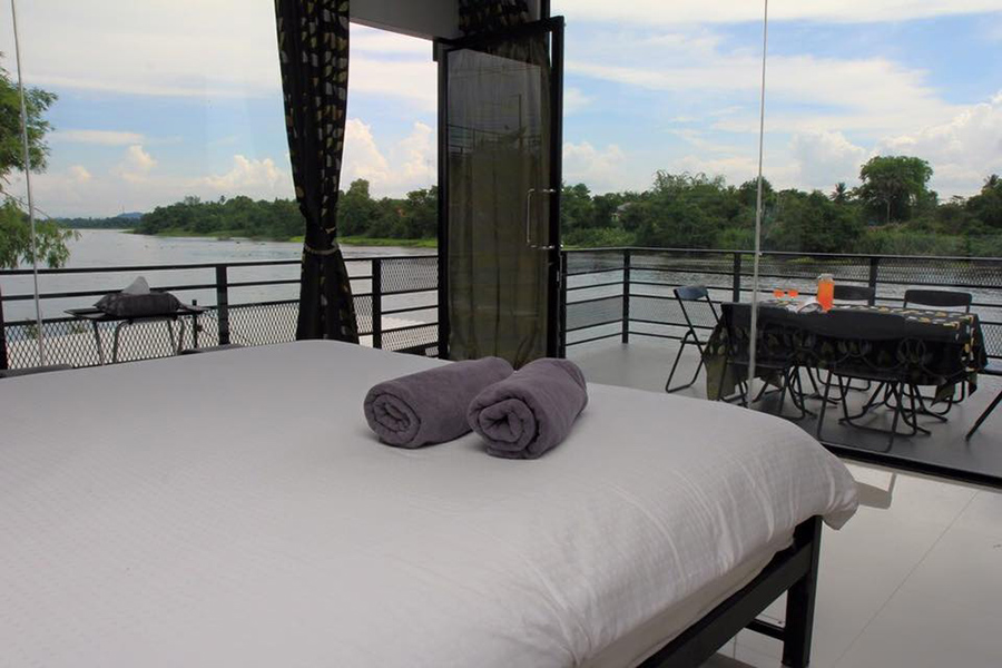 ริมน้ำโพธาราม รีสอร์ท อีกหนึ่งที่พักริมน้ำแม่กลองที่ตกแต่งตัวที่พักด้วยสไตล์ลอฟต์เน้นโชว์โครงสร้างเหล็กสีดำแบบเท่ๆ สำหรับห้องพักของที่นี่ก็มีให้เลือกทั้งหมด 6 ห้อง และห้องที่เรียกได้ว่าเป็นท็อปฮิตของที่นี่เลยก็คือ ห้องริมน้ำ 1 – 2 ห้องพักวิวแม่น้ำที่มีกระจกใสบานใหญ่ให้เราได้นอนดูวิวกันแบบเพลินๆ แต่นอกจากห้องริมน้ำ 1 – 2 แล้ว ห้องพักอื่นๆ ก็สามารถมองเห็นวิวแม่น้ำได้อีกด้วย ภายในตัวห้องก็ตกแต่งได้อย่างเรียบง่ายเน้นการพักผ่อนเป็นหลักและมีสิ่งอำนวยความสะดวกภายในห้องมากมาย ยิ่งช่วงเย็นๆ ลองออกมานั่งริมแม่น้ำดูรับรองเลยว่าตอบโจทย์ชีวิตสโลว์ไลฟ์อย่างแน่นอน