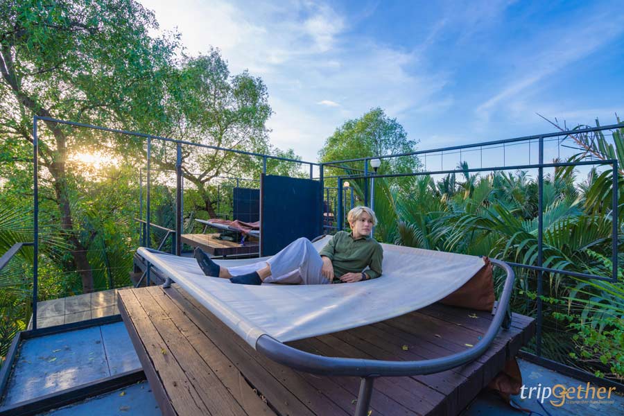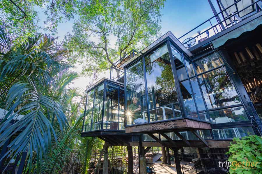 บางกอก ทรี เฮาส์ (Bangkok Tree House) ที่พักริมน้ำสุดหรูใกล้กรุงเทพ ตั้งอยู่ในป่าต้นกกริมน้ำเจ้าพระยา ที่พักสไตล์ Eco รักษ์ธรรมชาติ มิตรต่อสิ่งแวดล้อม มาพร้อมดีไซน์โดดเด่น นำเอาสถาปัตยกรรมสไตล์โมเดิร์น ผสมผสานกับความกรีนของธรรมชาติได้อย่างลงตัว แต่ละห้องมีเฟอร์นิเจอร์และสิ่งอำนวยความสะดวกครบครัน นอกจากนี้ทางที่พักยังมีร้านอาหารและคาเฟ่ที่เน้นเมนูสุขภาพให้ได้มาลองชิมกันด้วยนะ ใครอยากเปลี่ยนบรรยากาศมานอน ที่พักริมน้ำสุดหรู ชมวิวริมฝั่งแม่น้ำเจ้าพระยา พร้อมใช้ชีวิตช้าๆ อิงแอบธรรมชาติ ตามมาเช็คอินที่นี่เลย