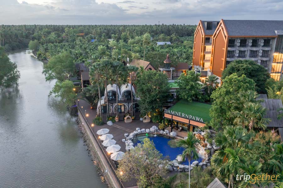 ดำเนินพวา รีสอร์ท บ้านต้นไม้ (Damnernpawa Resort) อีกหนึ่ง ที่พักริมน้ำสุดหรูใกล้กรุงเทพ ริมคลองบางน้อย แห่งสมุทรสงคราม ที่ผสมผสานบรรยากาศในวัยเด็กกับเทคโนโลยีและการตกแต่งแบบสมัยใหม่ได้อย่างลงตัว มีกลิ่นอายแบบยุโรป ท่ามกลางธรรมชาติ รีสอร์ทแห่งนี้มีความโดดเด่นในเรื่องการออกแบบและตกแต่ง ที่มอบความหรูหรา สะดวกสบาย บรรยากาศวิวริมน้ำทุกห้อง แถมยังมีห้องพักแบบพูลวิลล่าส่วนตัวที่อยู่ติดกับริมน้ำเลย ภายในเป็นห้อง 2 ชั้น มีไฮไลท์คืออ่างอาบน้ำระบบจากุซซี่แบบเอาท์ดอร์ ที่สามารถนอนแช่น้ำสบายๆ พร้อมกับชมวิวริมน้ำรีชาร์จความสุขทั้งร่างกาย และจิตใจ ท่ามกลางธรรมชาติอันเงียบสงบริมน้ำบางน้อย