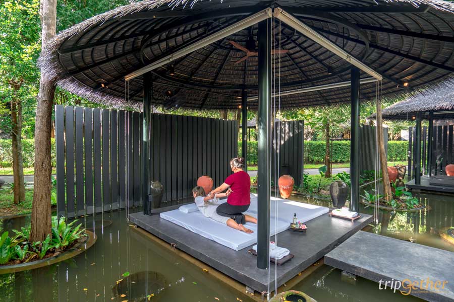 ไปกันต่อกับ ที่พักริมน้ำสุดหรูใกล้กรุงเทพ โซนจังหวัดกาญจนบุรีกันบ้าง เดอะเซ็นส์ รีสอร์ท (The Sense Resort Kanchanaburi) ตั้งอยู่ติดกับริมแม่น้ำแคว ไทรโยค กาญจนบุรี มาพร้อมกับพื้นที่กว้างกว้า 43 ไร่ ภายในห้องพักมาในดีไซน์ห้องกระจกใสแบบพาโนรามาทำให้สามารถมองเห็นวิวธรรมชาติ ธารน้ำด้านนอกได้แบบจัดเต็มทุกมุม แถมยังมีอ่างอาบน้ำและส่วนของระเบียง นอกจากนี้ยังมีวิลล่าแบบ The Lake Jacuzzi Villa ซึ่งตั้งอยู่ติดกับริมน้ำที่มีไฮไลท์เป็นสระน้ำระบบจากุซซี่แบบเอาท์ดอร์ ให้ได้ออกมารับอากาศแสนสดชื่น ความหรูหรายังไม่หมดแต่เพียงเท่านี้เพราะที่นี่ยังมีสระว่ายน้ำส่วนกลางที่เป็นสระแบบอินฟินิตี้พูลที่ยาวมที่สุดในกาญจนบุรี และสปา ฟิตเนส และร้านอาหารให้บริการครบ เรียกได้ว่าเป็นอีกหนึ่งที่พักริมน้ำสุดหรูใกล้กรุงเทพ บรรยากาศดี ที่ไม่ควรพลาด