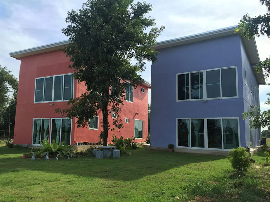 Happy Hamlets ที่พักสุพรรณบุรีริมแม่น้ำท่าจีนกับบรรยากาศอันแสนจะเงียบสงบ มองไปทางไหนก็เจอความเขียวขจีของธรรมชาติ รวมถึงมีลมเย็นๆ จากแม่น้ำพัดเข้ามาตลอด ตัวที่พักเน้นพื้นสวนให้ได้นั่งชิลล์หรือเดินเล่น เพื่อเสพความกรีนแบบฉ่ำๆ บ้านพักที่นี่มีให้เลือก 2 หลังก็คือหลังเล็กสำหรับ 2 คน และหลังใหญ่สำหรับ 7 คน เรียกได้ว่าจะมาเป็นคู่หรือมากันเป็นกลุ่มใหญ่ก็ได้มาพักผ่อนแบบจัดเต็มกลางธรรมชาติ