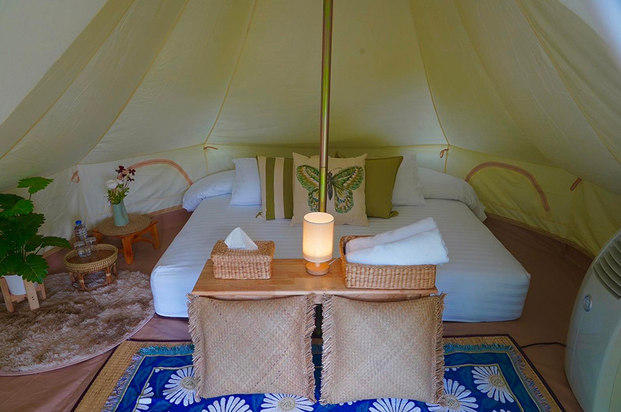 บ้านลูกสิงห์ ที่พักริมน้ำสุพรรณบุรีที่ตอบโจทย์สาย Glamping อยากนอนสบายๆ ใกล้ชิดธรรมชาติ และที่สำคัญมีความเป็นส่วนตัวสุดๆ ไม่ต้องกลัวว่าจะเจอกับผู้คนมากมาย เพราะที่นี่มีห้องพักเพียงแค่ 2 หลังเท่านั้น ลักษณะเป็นบ้าน 2 ชั้น มีพื้นที่ชั้นบนเป็นส่วนของเต็นท์กระโจมและพื้นที่ข้างล่างเป็นเหมือนห้องนั่งเล่น บอกเลยว่าการออกแบบและตกแต่งสวยแบบทำคอนเทนต์ได้เลย ด้วยบรรยากาศที่เงียบสงบและผู้เข้าพักมีจำกัดทำให้การบริการต่างๆ เต็มไปด้วยความเป็นกันเองและน่ารักมากๆ ถ้าอยากสัมผัสความชิลล์แบบนี้ ต้องลองมาด้วยตัวเองเท่านั้น