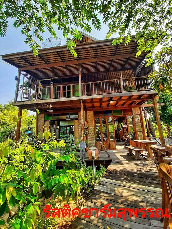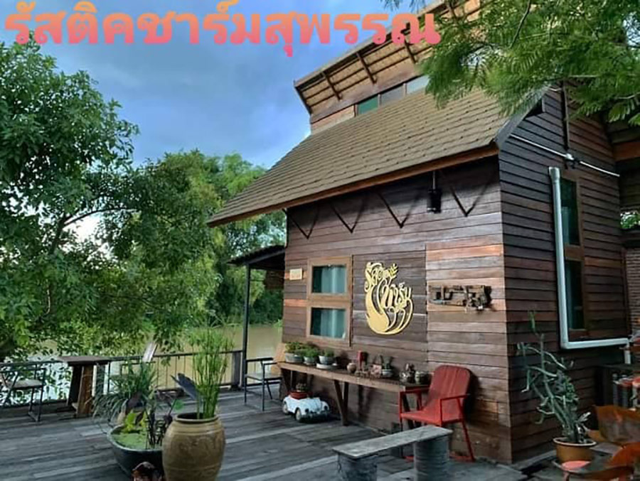 รัสติคชาร์มสุพรรณ มาพร้อมกลิ่นอายความเป็นบ้านๆ เน้นความเรียบง่ายและเป็นกันเอง ให้ฟีลเหมือนได้มานอนที่บ้านสวน บวกกับตัวบ้านเป็นบ้านไม้เล็กๆ อยู่ติดริมน้ำ มีลมสบายๆ จากสายน้ำพัดโกรกเข้ามาตลอด สำหรับบ้านพักจะมี 4 แบบด้วยกัน คือ บ้านไทยริมน้ำ บ้านญี่ปุ่นริมน้ำ บ้านกลางสวน และบ้านชนบท แต่ละหลังจะมีเอกลักษณ์และเสน่ห์ที่ต่างกันไป นอกจากนี้ยังมีพื้นที่ส่วนกลางให้ได้นั่งพูดคุยสังสรรค์หรือนั่งทำกิจกรรม พร้อมวิวแม่น้ำแบบใกล้ชิด เรียกได้ว่าเป็นที่พักริมน้ำสุพรรณบุรีที่เหมาะกับการหนีมาพักใจ ให้ธรรมชาติเยียวยามาก