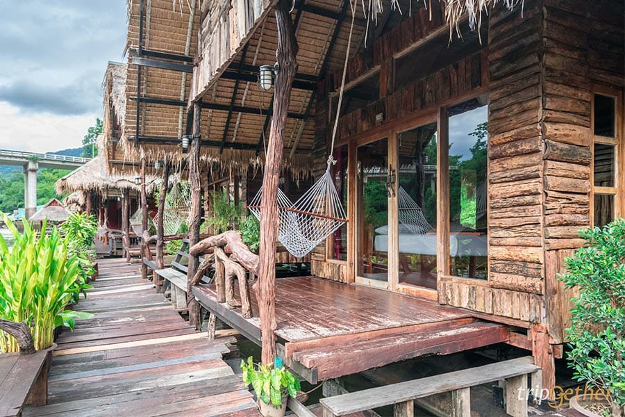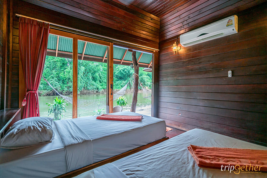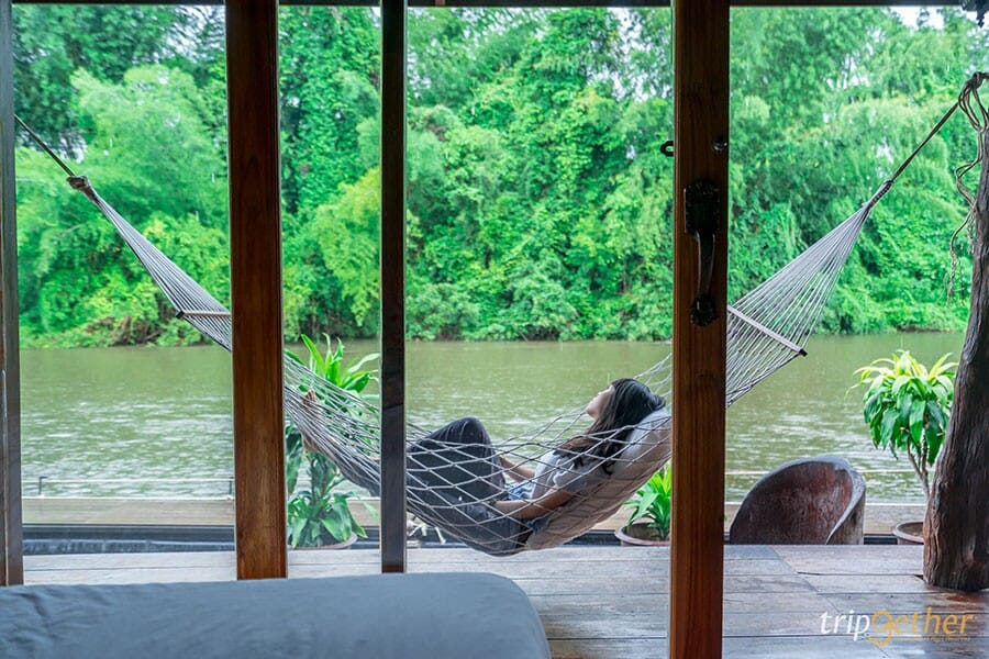 The For Rest Resort ที่พักริมแม่น้ำแคว โอบล้อมด้วยธรรมชาติ ที่จะเติมความสดชื่นให้กับวันพักผ่อนของคุณด้วยบรรยากาศเย็นสบายริมน้ำแคว ห้องพักบนแพที่เพียงแค่เปิดประตูก็สามารถสัมผัสกับสายน้ำเย็นๆ ได้แล้ว ด้านหน้าห้องพักยังมีเปลสีขาวให้ได้นอนชมวิวธรรมชาติ ฟังเสียงน้ำไหลกันอย่างชิลล์ๆ หรือใครจะนั่งห้อยขาจุ่มน้ำเพื่อรับความเย็นสบายก็ดีไม่น้อย ไปสัมผัสอากาศดีๆ กันได้เลยที่ The For Rest Resort แอบกระซิบว่าถ้าตื่นเช้าคุณจะได้เห็นวิวหมอกที่สวยงามสุดๆ