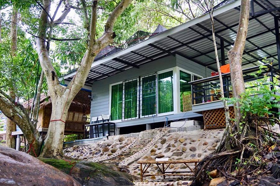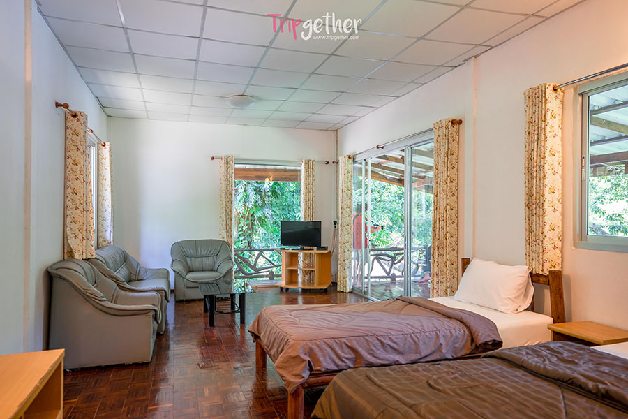 มาต่อกันที่ บ้านสวยริมธาร ที่พักสไตล์เรียบง่ายริมลำธารที่เปรียบเสมือนบ้านที่ซ่อนตัวอยู่ในธรรมชาติ สำหรับบ้านพักของที่นี่มีทั้งหมด 6 หลังแบ่งเป็นบ้านมีแอร์สี่หลัง ซึ่งมีบ้านหล้งใหญ่ที่สามารถพักได้ 6 – 8 คน ไม่ว่าจะมาเป็นครอบครัวหรือแก๊งซ์เพื่อนก็ตอบโจทย์สุดๆ และยังมีบ้านกระท่อมไม้ไผ่ให้นอนกันแบบฟินๆ อีกด้วย และนอกจากนี้ยังมีพื้นที่สำหรับกางเต็นท์ริมลำธารนอนฟังเสียงน้ำไหลแบบเพลินๆ ยิ่งช่วงหน้าฝนแบบนี้มีน้ำไหลเย็นๆ แบบไม่ผิดหวังอย่างแน่นอน