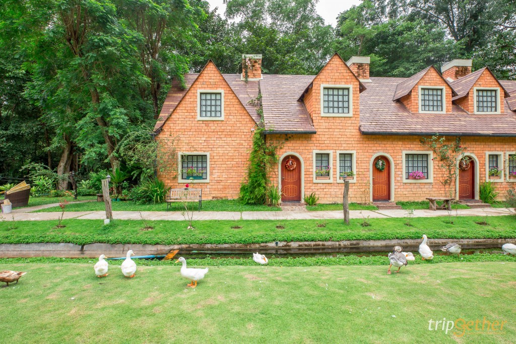 มาเริ่มกันที่ Bibury Resort ที่พักสวย โดดเด่นด้วยสถาปัตยกรรมอังกฤษ ออกแบบและตกแต่งอย่างมีเอกลักษณ์เหมือนได้มาเที่ยวหมู่บ้านเล็กๆ นอกเมืองอันแสนสงบของประเทศอังกฤษ และที่ตั้งของ Bibury Resort ยังอยู่ท่ามกลางธรรมชาติติดริมแม่น้ำลำภาชี มีหาดทรายริมแม่น้ำให้ผู้เข้าพักได้ลงเล่นน้ำได้ด้วย ที่นี่จึงเหมาะมากๆ สำหรับคนที่กำลังมองหาที่พักอากาศดีๆ ที่มีทิวทัศน์อันเขียวขจีของต้นไม้นานาพันธุ์ เพื่อพักกายพักใจในวันที่หยุด กระซิบว่าถ้าใครเป็นสายเช็คอิน ชอบถ่ายรูป เตรียมชุดสวยๆ มาให้พร้อมเพราะที่นี่มีมุมถ่ายรูปเพียบ ให้กดชัตเตอร์กันได้แบบรัวๆ ทั้งวัน