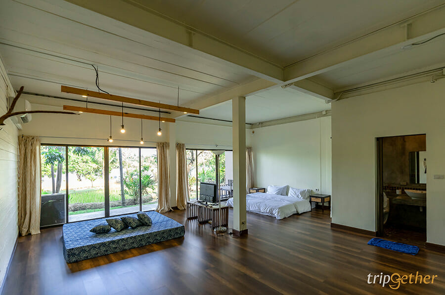 เดอะทริสต์ริเวอร์แคว ที่พักสไตล์ Forest Loft ริมแม่น้ำแควน้อย จังหวัดกาญจนบุรี มีความใกล้ชิดธรรมชาติและมีความเป็นส่วนตัวสุดๆ ห้องพักของ เดอะทริสต์ริเวอร์แคว มีทั้งหมด 9 แบบ แบ่งเป็นห้องบนแพ 5 แบบ คือ Panoramic River Vibe, River Vibe, Panoramic River Scene, River Scene และ Panoramic River Scene (Pool View) ส่วนห้องที่อยู่บนฝั่งจะมีทั้งหมด 4 แบบ คือ River Scape, Panoramic Pool Garden, Pool Garden และ See Through จะมากับแฟน เพื่อน หรือครอบครัวก็ได้ เพราะบรรยากาศที่แวดล้อมไปด้วยธรรมชาติเหมาะกับการพักผ่อนใช้ชีวิตสโลว์ไลฟ์ในวันหยุด