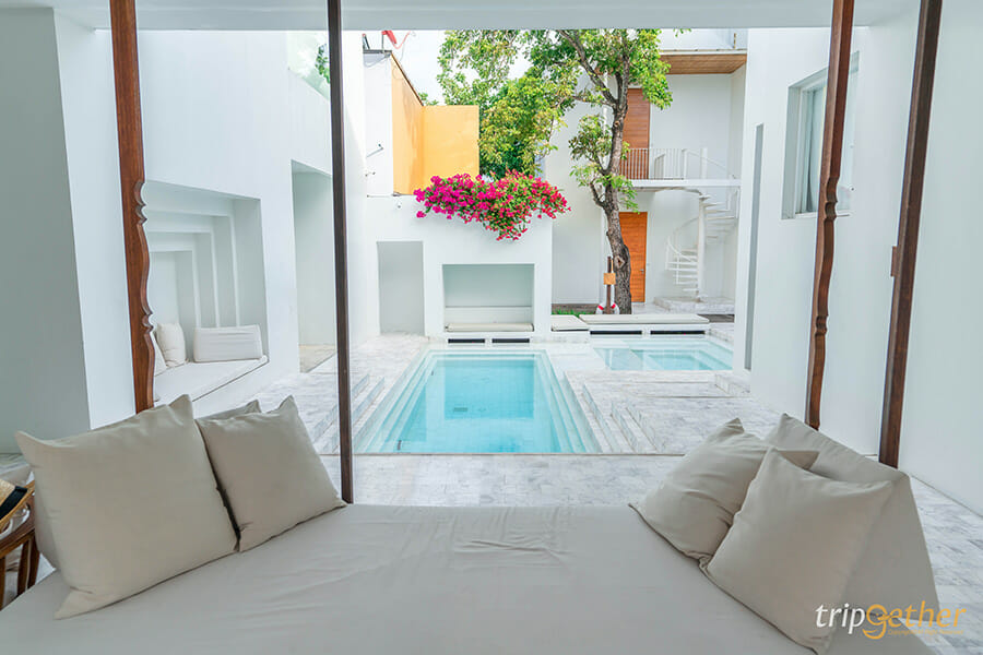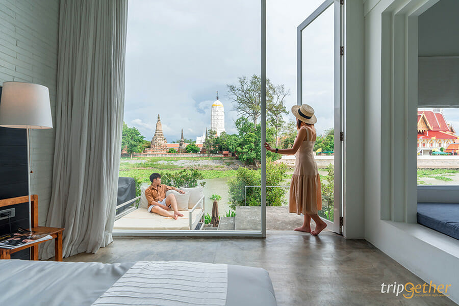 ศาลา อยุธยา บูติคโฮเทลริมแม่น้ำเจ้าพระยาที่อยู่กลางเมืองเก่าอยุธยา ด้วยการออกแบบที่โดดเด่นของสถาปัตยกรรมไทยที่ผสมผสานกับยุคสมัยใหม่ ห้องพักของศาลาอยุธยา มีทั้งหมด 26 ห้อง และ pool suite 1 ห้อง ห้องพักมี 5 แบบด้วยกันคือ superior, deluxe river view, deluxe river view terrace, one bedroom pool suite และ two bedroom duplex river view suite ไฮไลท์ที่อยากให้ปักหมุดไว้เลยคือวิวสวยๆ ของแม่น้ำเจ้าพระยา และจะมองเห็นวัดพุทไธศวรรย์ที่ตั้งอยู่อีกฝั่งหนึ่งของแม่น้ำด้วย