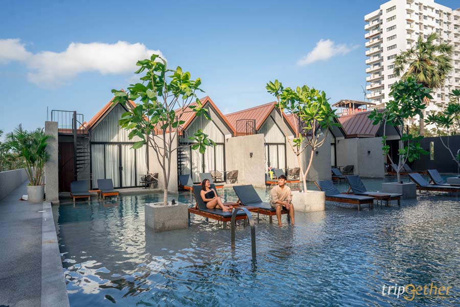 มาต่อกันที่ เคบ บางสเร่ (Kept Bangsaray) อีกหนึ่ง ที่พักสุดหรู ริมทะเล สุดฮอตของจังหวัดชลบุรี ด้วยเอกลักษณ์ที่มีสะพานทอดยาวไปที่ทะเล ให้ความรู้สึกเหมือนมาพักผ่อนกลางทะเลสุดๆ ตัวที่พักตกแต่งสไตล์มัลดีฟส์ เน้นสีขาวน้ำตาล กลมกลืนกับหมู่บ้านชาวประมงมากๆ พร้อมมีมุมถ่ายรูปสวยเพียบ! ในส่วนของห้องพักมีทั้งแบบห้องพักและบ้านส่วนตัวแบบเป็นหลังสุดโรแมนติก ตกแต่งโทนสีน้ำตาลและขาว พร้อมกับมีหน้าต่างกว้างและระเบียงนั่งชิลล์ชมพระอาทิตย์ตกดินและท้องฟ้าเปลี่ยนสี นอกจากนี้ยังมีสระว่ายน้ำขนาดใหญ่ให้ได้ลงว่ายเล่นผ่อนคลายๆ กันอีกด้วยนะ