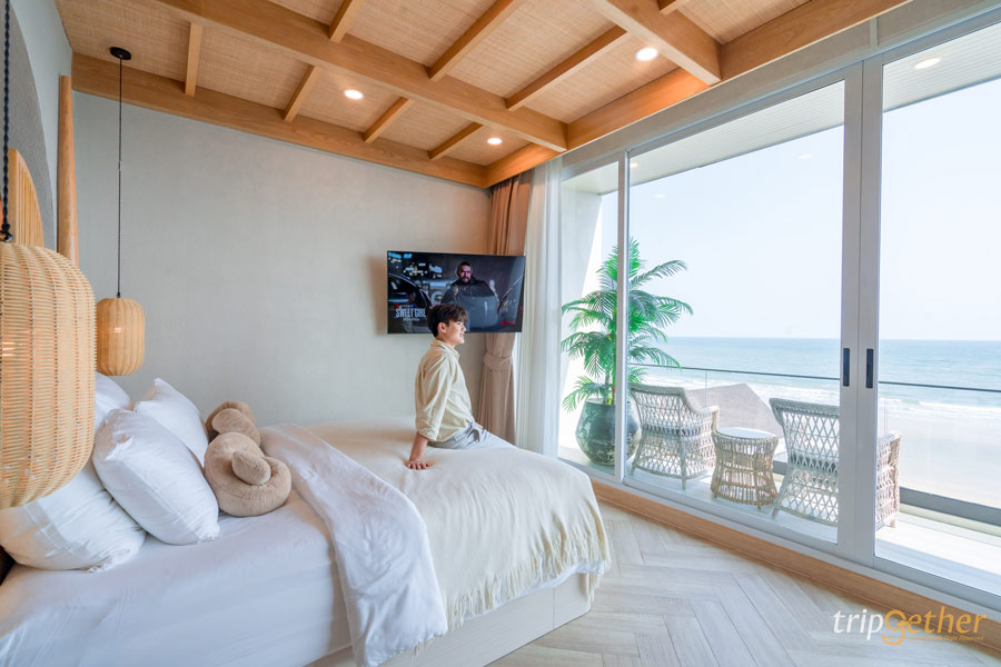 มาเริ่มที่แรกกันกับ มัลดีฟส์ บีช รีสอร์ท (Maldives Beach Resort) ที่พักสุดหรู ริมทะเล ที่อยู่เพียงแค่จันทบุรี แต่ต้องบอกเลยว่าทั้งดีไซน์สไตล์การตกแต่ง และบรรยากาศ เหมือนได้ไปอยู่มัลดีฟส์จริงๆ เลยล่ะ และเพียงแค่เดินออกมาจากที่พักก็สามารถเดินลงชายหาดได้แบบสบายๆ ห้องพักของที่นี่มีให้เลือกอยู่อย่างหลากหลาย ทั้ง Beachfront Honeymoon Suite ห้องพักแบบ 2 ชั้น ริมหน้าต่างมีอ่างอาบน้ำให้แช่แบบฟินๆ Beachfront Paradise Suite ห้องพักที่ผนังด้านหน้าเตียงนอนเป็นกระจกใสสามารถมองเห็นวิวทะเลได้อย่างสวยงาม และสุดท้ายคือ Romance Ocean View Studio แต่ละห้องก็ตกแต่งมาอย่างน่ารัก มีความมินิมอลมินิใจ ริมหน้าต่างมีอ่างอาบน้ำให้แช่แบบฟินๆ ถ่ายรูปสวยๆ ได้ทุกมุมเลยนะ
