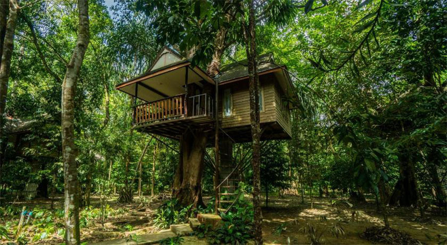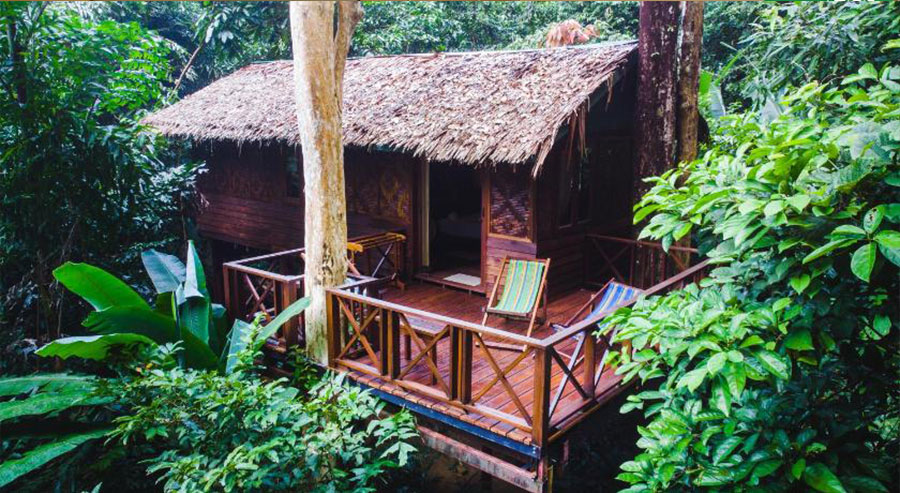Our Jungle Hous ที่พักสไตล์บ้านต้นไม้กลางป่าที่เป็นเอกลักษณ์ที่สุดของเขาสก Our Jungle House เป็นบ้านพักที่ซ่อนตัวอยู่ในผืนป่ากว่า 60 ไร่ มีลำธารใสอยู่ติดกับที่พัก สำหรับคนที่ต้องการมาสัมผัสกับธรรมชาติที่อุดมสมบูรณ์ ตัดขาดจากโลกภายนอกต้องชอบแน่นอน บ้านพักของที่นี่มีให้เลือกทั้งแบบบ้านต้นไม้และบังกะโล มีสิ่งอำนวยความสะดวกแบบครบครัน นอกจากนี้บรรยากาศของบ้านพักแต่ละหลังยังทำให้เราได้สัมผัสถึงธรรมชาติแบบใกล้ชิดอีกด้วยและที่สำคัญเรายังสามารถสัมผัสอากาศเย็นแบบไม่ต้องพึ่งเครื่องปรับอากาศได้ตลอดทั้งปีเลย