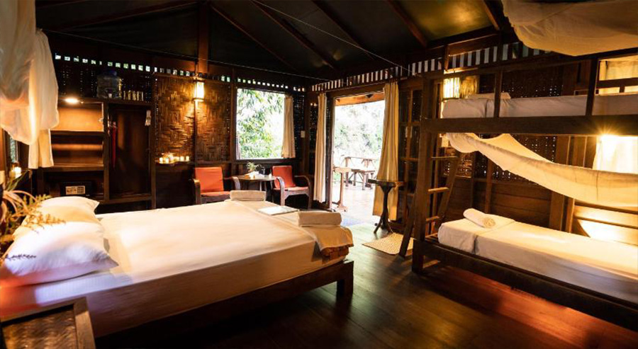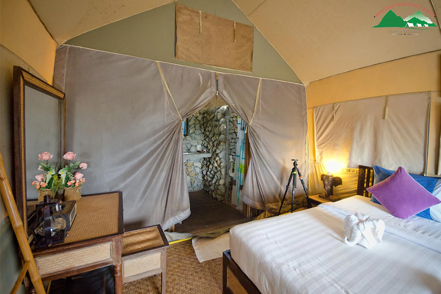Khaosok Boutique Camps ที่พักใกล้ชิดธรรมชาติที่เขาสก ตั้งอยู่บนภูเขาที่ล้อมรอบไปด้วยความเขียวขจีของต้นไม้ และความงดงามของธรรมชาติ ห้องพักของ Khaosok Boutique Camps มีทั้งหมด 3 แบบ ห้องแบบแรกคือ Romantic Signature View ที่ออกแบบมาให้ใกล้ชิดธรรมชาติ และสามารถมองเห็นวิวภูเขาได้แบบ 270 องศา ห้องแบบที่สองคือห้อง Exotic top view เป็นห้องพักแบบเต็นท์ติดแอร์ พร้อมสิ่งอำนวยความสะดวกแบบครบครันสามารถชมวิวภูเขาที่อยู่ตรงหน้าได้อย่างสวยงาม และห้องแบบที่สามคือห้อง Sunset View เป็นห้องที่สามารถมองเห็นพระอาทิตย์ตกจากระเบียงห้องพักได้สวยที่สุดอีกด้วย