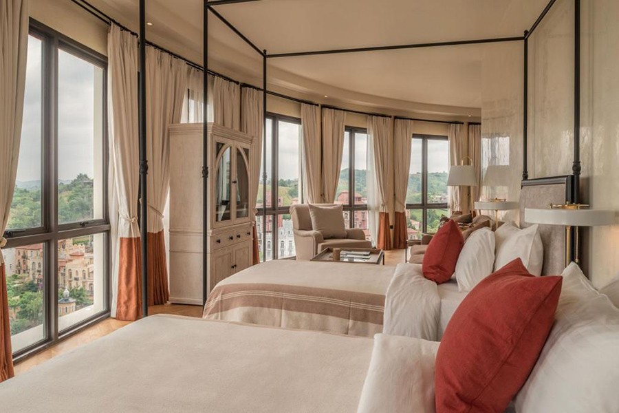 ที่พักที่เสมือนยกเมืองอิตาลีในชนบทมาไว้ที่เขาใหญ่ เมื่อก้าวเท้าเข้าไปยัง Toscana Valley ต้องได้สัมผัสกับบรรยากาศและสถาปัตยกรรมที่เหมือนเมืองทัสคานีในประเทศอิตาลีอันเงียบสงบ ซึ่งรายล้อมไปด้วยหุบเขาและธรรมชาติ ออกแบบได้อย่างพิถีพิถันตั้งแต่ทางเข้ามาจนถึงในห้องพักกันเลยทีเดียว เมื่อเดินเข้าไปถึงเหมือนหลุดไปยังแคว้นทัสคานีที่ไม่ว่าจะมองมุมไหนก็ถ่ายรูปได้หมด มาเริ่มที่โซน Town Square เป็นศูนย์รวมความคึกคักเพราะมีตึกสวยๆ ร้านอาหารอิตาเลียน ไวน์บาร์ คาเฟ่ และร้านเบเกอรี่ ที่จัดเรียงไว้ 2 ข้างทางเหมือนเดินอยู่ในตัวเมือง และในโซนนี้ยังเป็นที่ตั้งของ Town Square Suites โรงแรมสไตล์ปราสาททัสคานีที่ได้แรงบรรดาลใจมาจาก Piazza ย่านจัตุรัสกลางเมืองอิตาลีนั่นเอง ภายในโรงแรมมีห้องพักทั้งหมด 5 ไทป์ คือ Town View, Valley View, Mountain View, Horizon View และ Horizon Suite โดยแต่ละห้องมีจุดเด่นที่แตกต่างกันออกไป แต่สามารถมองเห็นทะเลสาบและสนามกอล์ฟระดับเวิลด์คลาส ถัดกันนั้นเป็นวิวของอุทยานแห่งชาติเขาใหญ่ที่สวยอลังการในทุกมุมมองจริงๆ หากใครชื่นชอบการมานอนสัมผัสบรรยากาศสบายๆ แบบนี้ต้องแวะมาที่ Toscana Valley