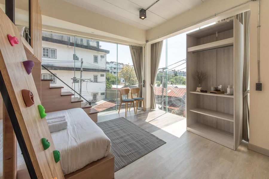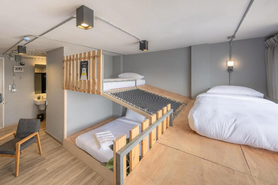 หัวหินก็มีที่พักสไตล์มินิมอลน่ารักๆ ที่ตอบโจทย์ไลฟ์สไตล์ของคนรุ่นใหม่กับรูปแบบการใช้ชีวิตแบบดิจิทัลทันสมัยผสมผสานกับความเรียบง่ายสะดวสบายมาพร้อมฟังก์ชั่นครบครันและสิ่งอำนวยความสะดวกให้ผู้เข้าพักได้รับความสบายรู้สึกผ่อนคลายสุดๆ โดยมีห้องพักให้เลือกหลากหลายทั้งแบบ Dormitory Room เป็นห้องพักรวมมีทั้งแบบแยกชาย หญิง และแบบรวมชายหญิง โดยจะมีผ้าม่านกั้นให้ความเป็นส่วนตัวกับผู้เข้าพัก พร้อมปลั๊กไฟ โคมไฟ ล็อกเกอร์เก็บของมีค่าให้พร้อม ถัดมาเป็น Privete Room เป็นห้องพักแบบส่วนตัวมีให้เลือกทั้งแบบวิวทะเลและวิวเมือง อีกทั้งยังมีแบบเตียงคู่ เตียงเดี่ยว เตรียงใหญ่สำหรับ 2 คน และห้องพักสำหรับครอบครัว 3-4 คนก็มี นอกจากนี้ยังมีพื้นที่ Pantry Area สำหรับทำครัว ไมโครเวฟ ตู้เย็น มีน้ำเปล่า ขนมคุ้กกี้บริการฟรีตลอด 24 ชม. หากใครอยากนั่งคุยกันระหว่างรอเช็คอินขึ้นห้องพักที่นี่ก็มีคาเฟ่ชิคๆ บริการเครื่องดื่ม ชา กาแฟ ให้อีกด้วย เป็นที่พักที่ตอบโจทย์วัยรุ่นอย่างเราจริงๆ