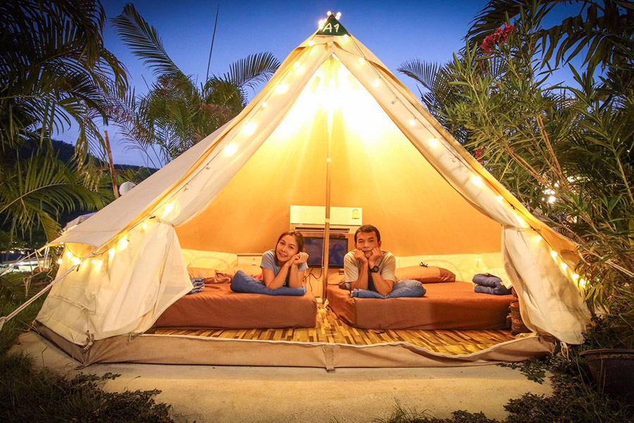 นอนกระโจมที่แก่งกระจาน ตอนนี้เทรนด์เต็นท์กระโจมกำลังมาแรง ใครๆ ก็อยากถ่ายรูปชิคๆ เป็นสายฮิปกันทั้งนั้น แถมที่แก่งกระจานมีเต็นท์แคมป์ปิ้งเปิดใหม่หลายที่เลยทีเดียว เราจึงไม่พลาดที่จะรวบรวม 5 ที่พักสไตล์แคมป์ปิ้งแก่งกระจาน ชมวิวแม่น้ำสุดแจ่ม ไม่ไกลกรุงฯ ที่มีเต็นท์นอนแบบน่าสนใจมาฝาก 5 ที่พักสไตล์แคมป์ปิ้งแก่งกระจาน ชมวิวแม่น้ำสุดแจ่ม ไม่ไกลกรุงฯ นอกจากจะเหมาะแก่การพาแฟนไปจู๋จี๋แล้ว ยังเหมาะแก่การชวนแก็งค์เพื่อนไปทำกิจกรรมสุดมันส์ ซึ่งแต่ละที่เตรียมไว้อย่างไม่น้อยหน้ากัน ได้มานอนเต็นท์แบบโรแมนติก กินปิ้งย่างแสนสุขสันต์ แถมยังได้ทำกิจกรรมสุดตื่นเต้นอีกด้วย ครบทุกอารมณ์จริงๆ