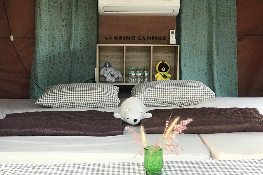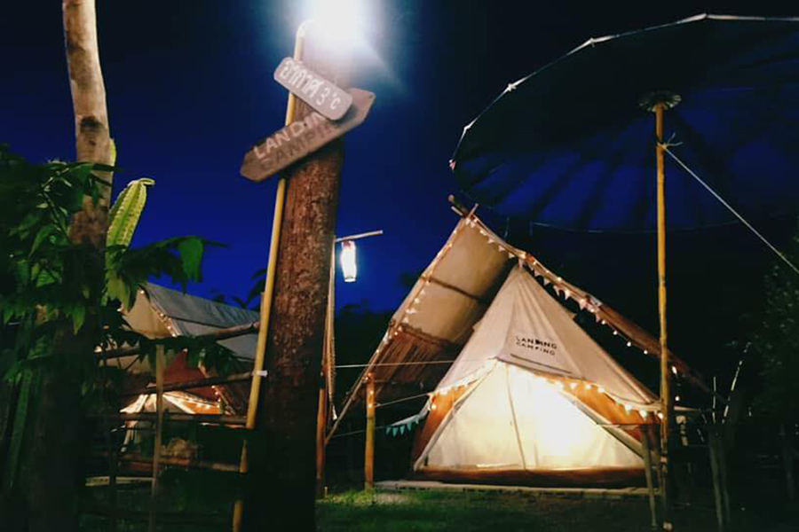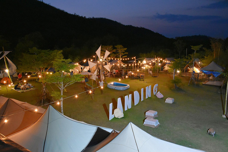 แลนด์ดิ้งแคมป์ปิ้ง ที่พักเน้นธรรมชาติกลางหุบเขา มีหลากหลายแบบ ทั้ง แบบเต็นท์ธรรมดา แบบกระโจม(พัดลม) แบบบ้านเต็นท์(พัดลม) แบบบ้านเต็นท์(แอร์) และแบบบ้านพัก สะดวกแบบไหนที่นี่มีครบ แถมยังมีชุดหมูกะทะขายสำหรับปิ้งย่างหน้าแคมป์กันอย่างสนุกสนาน แคมป์ปิ้งกับปิ้งย่างมันของคู่กันอยู่แล้ว การตกแต่งก็น่ารักเหมาะแก่การมาพักกับเพื่อนๆ เป็นหมู่คณะ แลนด์ดิ้งแคมป์ปิ้งอยู่ห่างจากแม่น้ำ 200 เมตร สามารถเดินไปเล่นน้ำได้ชิลล์ๆ เลย