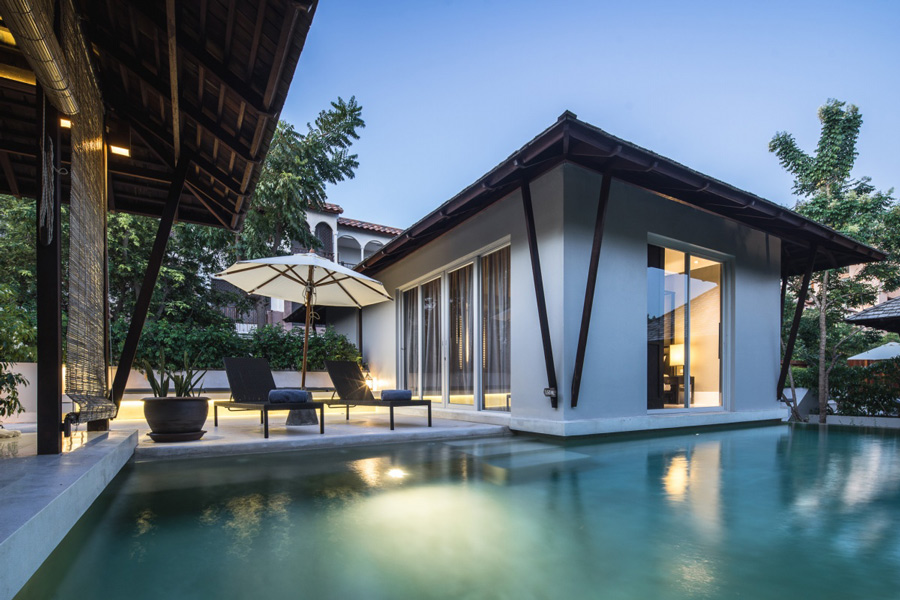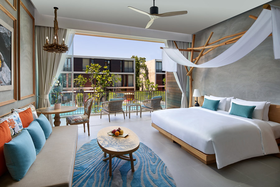 The Rock Hua Hin Beachfront Spa Resort ที่พักหัวหินติดทะเลย่านเขาตะเกียบ มีห้องพักเพียง 26 ห้อง เน้นบรรยากาศที่สงบและความไพรเวต สามารถเดินทางได้สะดวกเพราะตั้งติดถนนสายหลักและใกล้สถานที่ท่องเที่ยวของหัวหิน ส่วนห้องพักที่มีสระว่ายน้ำส่วนตัว ก็มีให้เลือกทั้ง Zen Jacuzzi Pool Terrace ห้องพักพร้อมสระว่ายน้ำจากุซซี่และพื้นที่สวนหลังบ้านส่วนตัว หรือใครชอบห้องใหญ่ขึ้นมาหน่อย ก็เลือกเป็น Zen+ Plus Jacuzzi Pool Terrace ได้เลย ส่วนใครอยากเพิ่มความเอ็กซ์คลูซีฟ ก็ขอแนะนำห้อง Qualia Jacuzzi Pool Villa วิลล่าส่วนตัวสุดหรูที่อยู่ใกล้ทะเลและชายหาดมากที่สุด มาพร้อมสระว่ายน้ำจากุซซี่ส่วนตัวริมสวน
