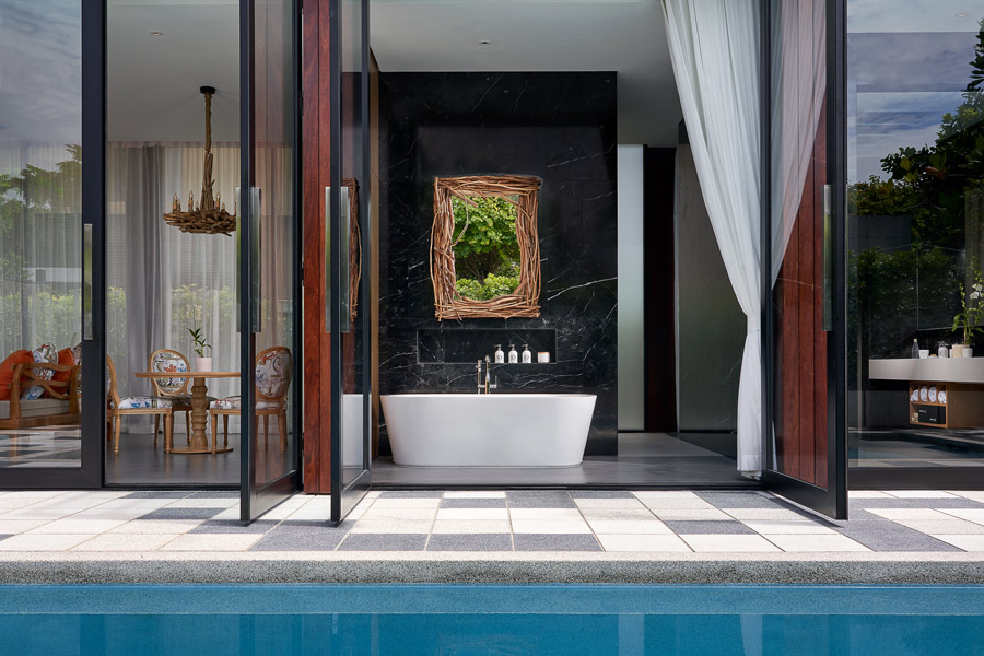 VALA Hua Hin ที่พักหัวหินระดับ 5 ดาว ตั้งอยู่ริมชายหาดระหว่างชะอำ – หัวหิน ที่นี่โดดเด่นด้วยคอนเซ็ปต์การออกแบบที่สวยงาม ทำให้ตัวที่พักสามารถถ่ายรูปได้ทุกมุม อีกหนึ่งไฮไลท์ของที่นี่คือสระว่ายน้ำส่วนกลาง ที่มีบาร์ค็อกเทลด้วย และยังสามารถออกไปเดินเล่นชายหาดหรือเล่นทะเลได้ตรงจากที่พักเลย ส่วนห้องพักที่มีอ่างอาบน้ำ ก็ขอแนะนำเป็นห้อง Sky Beachfront และ Deluxe Beachfront เป็นห้องพักที่สามารถมองเห็นวิวทะเลได้แบบเต็มๆ ตาเพราะมีกระจกระเบียงบานใหญ่ และไฮไลท์ก็คืออ่างอาบน้ำข้างกระจก แช่น้ำไปมองวิวไป รับรองว่าฟีลดีสุดๆ