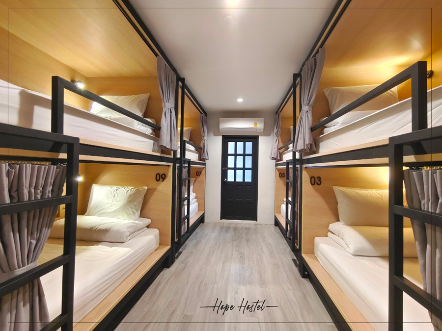 Hope Hostel Hatyai ที่พักสไตล์ Hostel สุดน่ารักในเมืองหาดใหญ่ เอาใจสายเที่ยวแบบแบ็คแพ็คและเที่ยวแบบเป็นครอบครัวและแก๊งค์เพื่อน ห้องพักของที่นี่มีให้เลือกหลักๆ คือห้องแบบPrivate ที่พักผ่อนได้แบบสบายๆ และเป็นส่วนตัว และห้องครอบครัว รวมทั้งห้องพักแบบ Mixed Dorm ที่มีเอกลักษณ์และถูกใจคนที่ชื่นนชอบการท่องเที่ยวแนวสะพายเป้ นอกจากนี้ยังมีพื้นที่ส่วนกลางให้ได้นั่งทำกิจกรรม พักผ่อน เล่นเกม โซนอ่านหนังสือ และโซนห้องครัวที่มีอุปกรณ์ครบไว้ให้บริการอีกด้วย ในช่วงเย็นถ้าใครอยากชมวิวเมืองหาดใหญ่ก็สามารถขึ้นไปนั่งรับลมบนดาดฟ้าของที่พักได้แบบยาวๆ