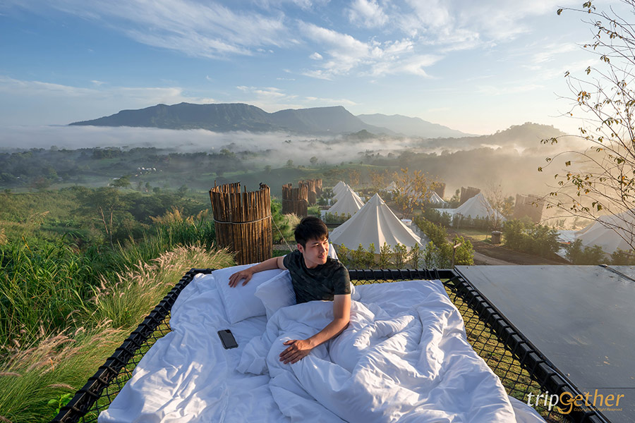 สำหรับใครที่อยากมานอนแคมป์ปิ้งชิลล์ๆ โอบล้อมด้วยสายหมอกแนะนำที่ วิธา เขาค้อ กับภาพวิวพาโนรามาของทุ่งหญ้า ขุนเขา และทะเลหมอก เป็นภาพพื้นหลังที่ถ่ายรูปออกมาเหมือนอยู่ต่างประเทศมาก สำหรับห้องพักจะแบ่งออกเป็น 3 แบบ คือ Glamping tent, VIP family tent และ Caravan car ถึงแม้ว่าจะเป็นที่พักเต็นท์แต่สิ่งอำนวยความสะดวกครบครัน มีการเว้นระยะห่างระหว่างเต็นท์ทำให้มีพื้นนี้ส่วนตัว บวกกับมีระเบียงหน้าที่พักทำให้เราได้ดื่มด่ำกับความสวยงามของธรรมชาติแบบจุใจ อีกทั้งแต่ละเต็นท์ยังมีเปลตาข่ายให้ได้ถ่ายรูปเก๋ๆ กลางธรรมชาติที่รับรองเรียกยอกไลก์ได้รัวๆ บรรยากาศดีแบบนี้จะขาดหมูกระทะก็คงไม่ได้ โดยทางที่พักมีเสิร์ฟเซ็ตหมูกระทะถึงหน้าที่พัก กินเพลินๆ อิ่มอร่อยและเต็มอิ่มกับบรรยากาศชิลล์ๆ