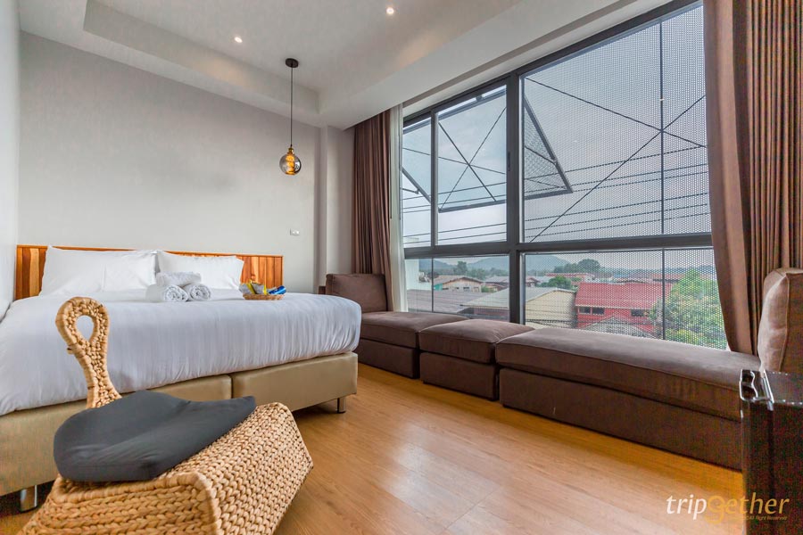 เริ่มพิกัดแรก อยู่ เชียงคาน (U Chiangkhan) ที่พักริมแม่น้ำโขงสุดน่ารัก สไตล์โมเดิร์น อยู่ติดถนนคนเดินเชียงคาน ห้องพักของที่นี่มีให้เลือกพักหลายรองรับทั้งการเข้าพักตั้งแต่ 2 คน ไปจนถึงแบบกลุ่ม 10 คน โดยมีการตกแต่งจัดสรรพื้นที่ใช้สอยได้อย่างลงตัว สิ่งอำนวยความสะดวกครบครัน แถมมีดาดฟ้าให้ขึ้นไปนั่งเล่นชมวิวเมืองสวยๆ ด้วย พักผ่อนสบาย บรรยากาศเงียบสงบ ตื่นเช้ามาใส่บาตรให้จิตใจเบิกบานรับวันใหม่ โดยทางที่พักมีบริการชุดตักบาตรให้ด้วยนะ นอกจากนี้ก็ยังมีจักรยานให้ปั่นกันฟรีๆ