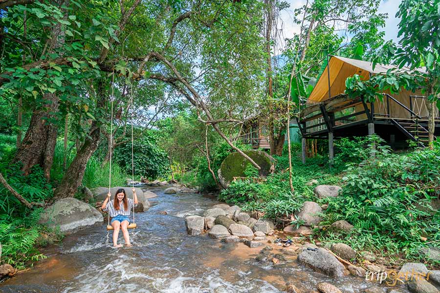 บ้านธารกล่อม ที่พักริมน้ำกลางป่าสุดร่มรื่น ในจังหวัดเชียงใหม่ มาพร้อมบรรยากาศที่โอบล้อมไปด้วยธรรมชาติและสายน้ำ เหมาะสำหรับคนที่ต้องการมาพักผ่อนในที่ที่มีความสงบ และไม่วุ่นวาย ในส่วนของห้องพักมีให้เลือกทั้ง บ้านไม้ริมน้ำ บ้านพักหลังใหญ่ บ้านต้นไม้ และกระโจมริมน้ำ ซึ่งเพื่อนๆ สามารถเลือกพักได้ตามความชอบและสไตล์ของตัวเอง ลักษณะของแต่ละห้องอาจจะแตกต่างกันออกไปก็จริง แต่สิ่งที่เหมือนกันคือความร่มรื่นและวิวสวยๆ ของธรรมชาติและสายน้ำ ถือเป็นอีกหนึ่งที่พักในจังหวัดเชียงใหม่ที่ไม่ควรพลาด