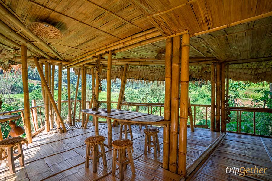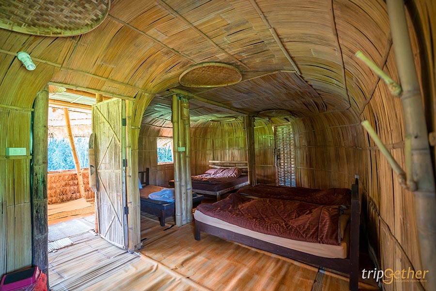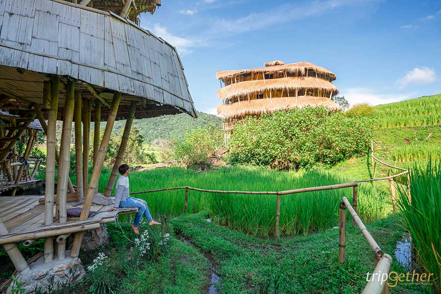 บ้านไม้ไผ่ยักษ์ บ้านพักไม้ไผ้ 3 ชั้น ที่ตั้งเด่นสง่ากลางผืนนาสีเขียว ภายในประกอบด้วย 2 ห้องนอน 2 ห้องน้ำ สามารถรองรับการเข้าพักได้ถึง 10 คน ซึ่งผู้ที่จะมาเข้าพักต้องแจ้งล่วงหน้า เพราะที่พักแห่งนี้จะรับ 1 กรุ๊ป ต่อการเข้าพัก 1 ครั้ง ซึ่งทำให้บรรยากาศสงบ และเป็นส่วนตัว เหมาะกับการมาพักผ่อนมากๆ อีกทั้งยังมีวิวสวยๆ ของธรรมชาติให้เห็นตลอดการเข้าพัก รอบบริเวณเต็มไปด้วยพื้นที่และทางเดินธรรมชาติ สามารถเดินเล่นและพักผ่อนตามอัธยาศัยได้เลย เหมาะสำหรับผู้ที่ชื่นชอบการเสพบรรยากาศแบบกรีนๆ