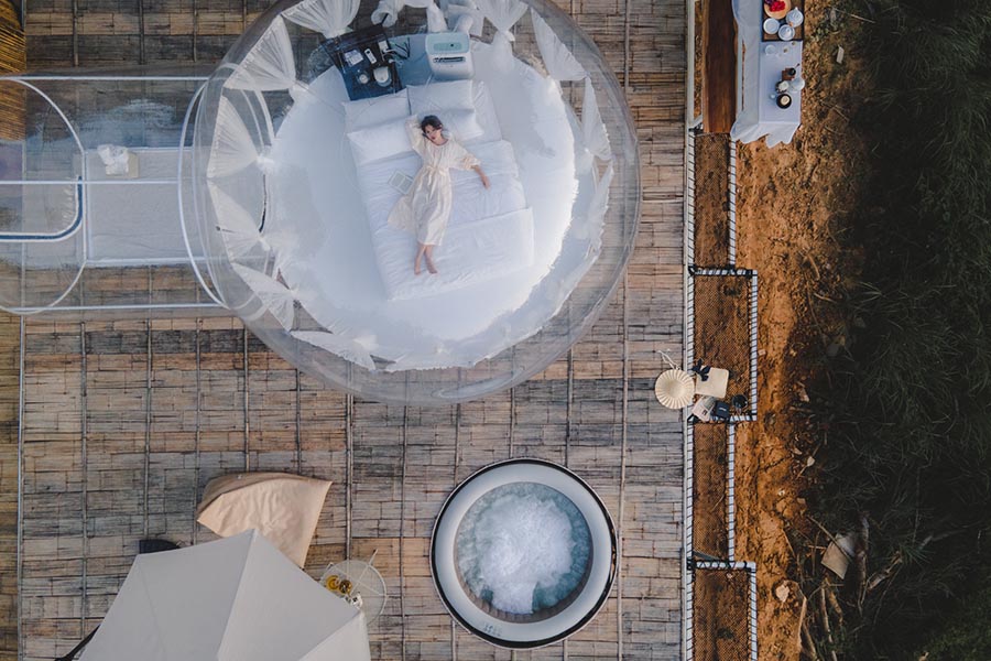 อีบส์ยอร์น ที่พักบรรยากาศสวิซเซอร์แลนด์ แต่ความจริงแล้วอยู่แค่เชียงดาว จังหวัดเชียงใหม่นี้เอง ทุกห้องพักเป็นเต็นท์โดมใส ตกแต่งภายในได้อย่างหรูหราพร้อมติดแอร์ และห้องน้ำส่วนตัวที่แยกออกจากตัวเต็นท์โดม และไฮไลท์ของที่นี่คืออ่างจากุซซี่สุดฟิน ที่ถูกจัดวางบนพื้นที่อย่างเหมาะสมเพื่อความเป็นส่วนตัวของผู้เข้าพัก อีกทั้งยังอยู่ติดกับทะเลสาบพร้อมวิวภูเขาและต้นสน เป็นอีกหนึ่งที่พักที่สามารถถ่าายรูปสร้างคอนเทนท์สวยๆ ได้แบบฉ่ำๆ