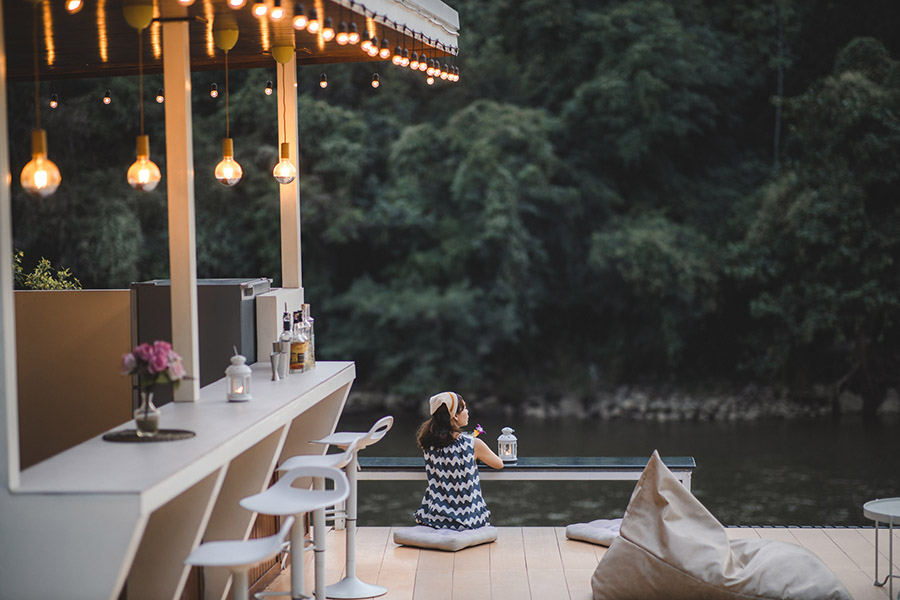 บ้านภูฟ้ารีสอร์ท ที่พักบรรยากาศดีติดริมแม่น้ำแควน้อย ในอำเภอไทรโยคแห่งนี้ มาพร้อมกับห้องพักบนแพและเรือนไม้ที่ล้อมรอบไปด้วยธรรมชาติ อยากนอนชิลล์ริมแม่น้ำแนะนำบ้านพักบนแพ แต่สำหรับใครที่อยากได้ความเป็นส่วนตัวแนะนำเรือนไม้ด้านบน ที่บรรยากาศดีไม่แพ้ด้านล่าง ภายในห้องตกแต่งสไตล์เรือนไทย พร้อมเฟอร์นิเจอร์และสิ่งอำนวยความสะดวกแบบครบครัน และที่พิเศษที่สุดคือห้องพักโซนใหม่ เป็นโดมใสสุดชิค มาพร้อมอ่างอาบน้ำแบบเอ้าท์ดอร์ ให้เพื่อนๆ ได้แช่พร้อมชมวิวริมน้ำแบบฟินๆ บอกเลยว่าเป็นการเปิดประสบการณ์การพักผ่อนริมน้ำที่ดีจริงๆ