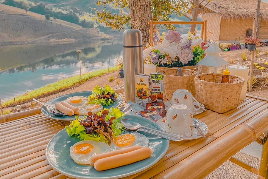 ปาท่องโก๋ แคมป์ปิ้ง ที่พักแห่งนี้ไม่ได้ขายปาท่องโก๋ใดๆ แต่ขายบรรยากาศที่คนชอบแคมป์ปิ้งต้องหลงรัก ด้านหน้าเป็นวิวอ่างเก็บน้ำและโอบล้อมไปด้วยขุนเขา ส่วนของที่พักจะเป็นเต็นท์โดม เต็นท์กระโจม และลานกางเต็นท์ ให้เลือกพักกันตามอัธยาศัย วิวด้านหน้าห้องพักถือเป็นไฮไลท์เพราะสวยจนต้องถ่ายภาพเก็บไว้ เท่านั้นยังไม่พอที่นี่มีกิจกรรมทางน้ำทั้ง บอร์ดยืนพาย ซับบอร์ด เรือแคนู และเรือคายัค ไว้ให้พายกันชิลล์ๆ ในอ่างเก็บน้ำ แถมที่นี่ยังสามารถเอาน้องหมา น้องแมวมาพักผ่อนได้อีกด้วยนะ